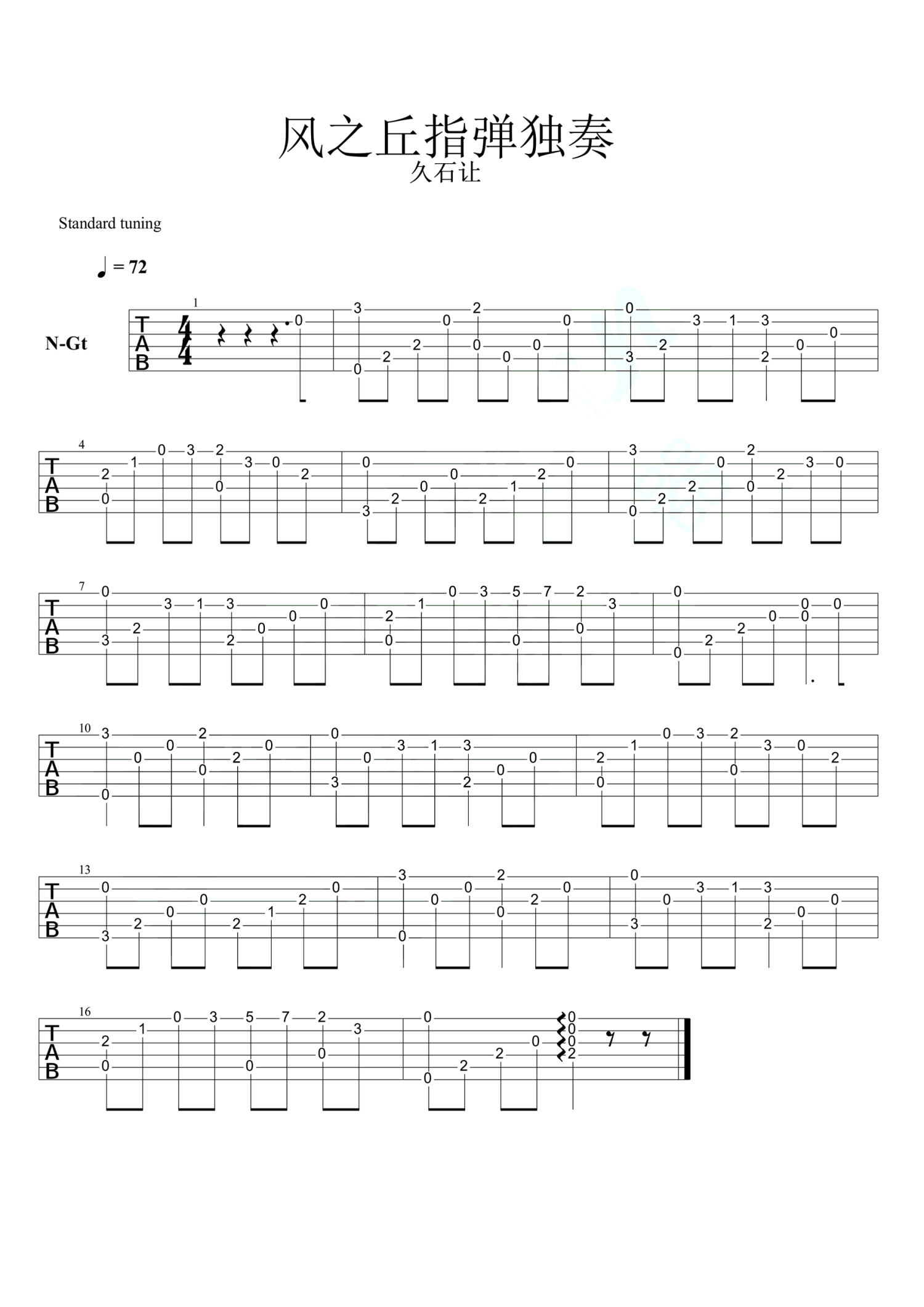 风之丘吉他谱 - 久石让 - C调吉他独奏谱 - 简单版