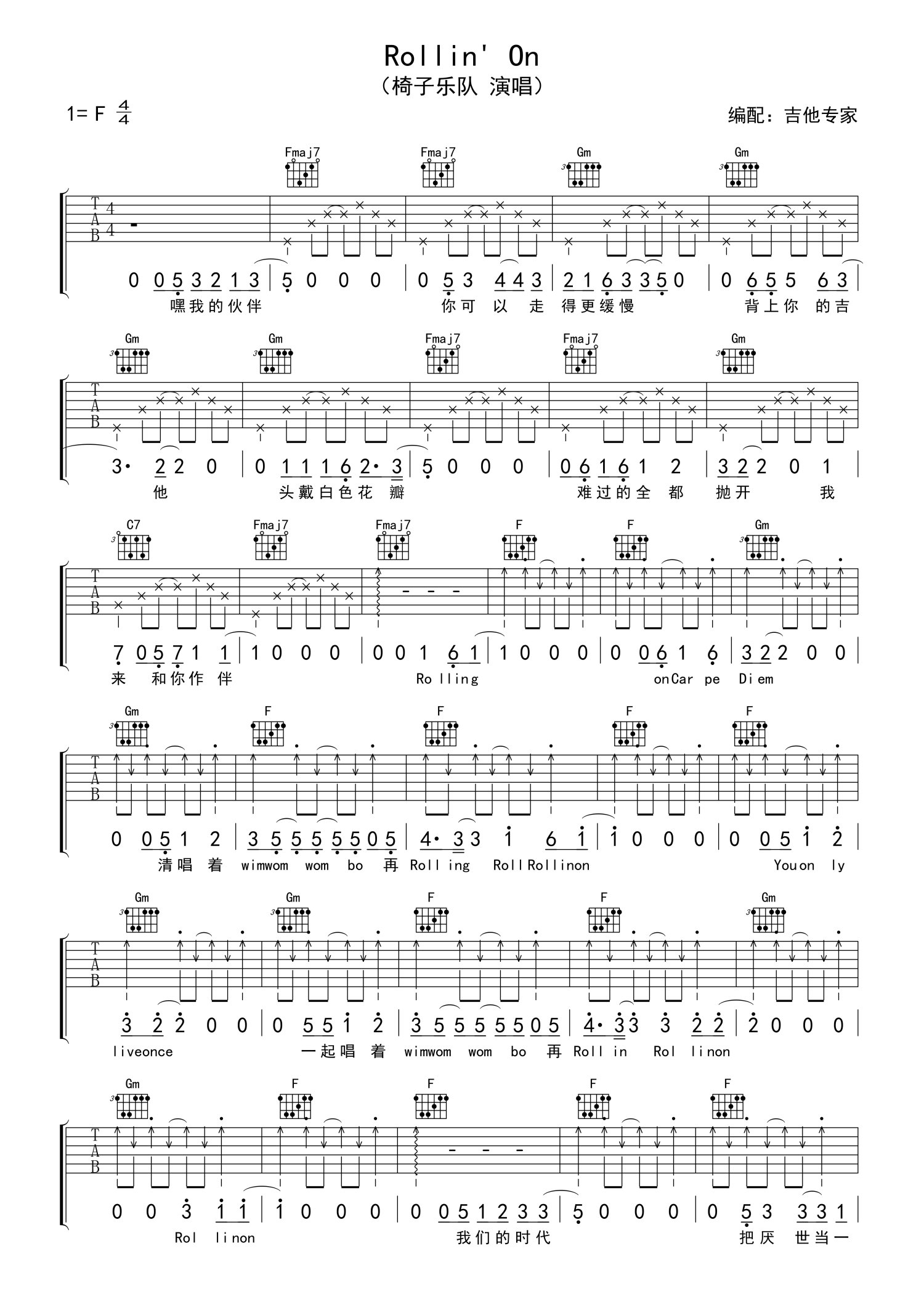 曲谱介绍: 椅子乐队《Rollin' On》吉他谱_F调吉他弹唱谱