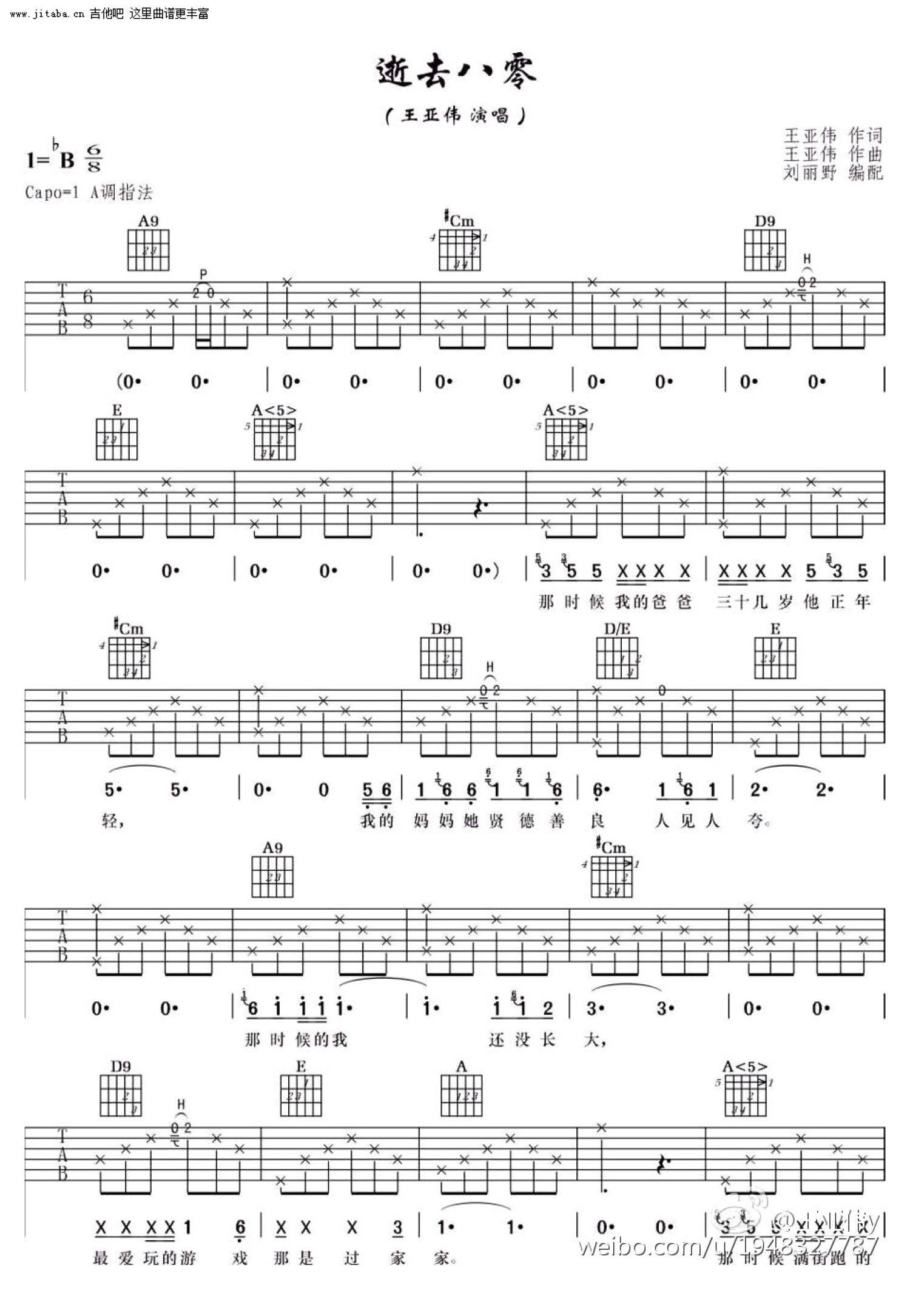 逝去八零吉他谱 - 王亚伟 - A调吉他弹唱谱