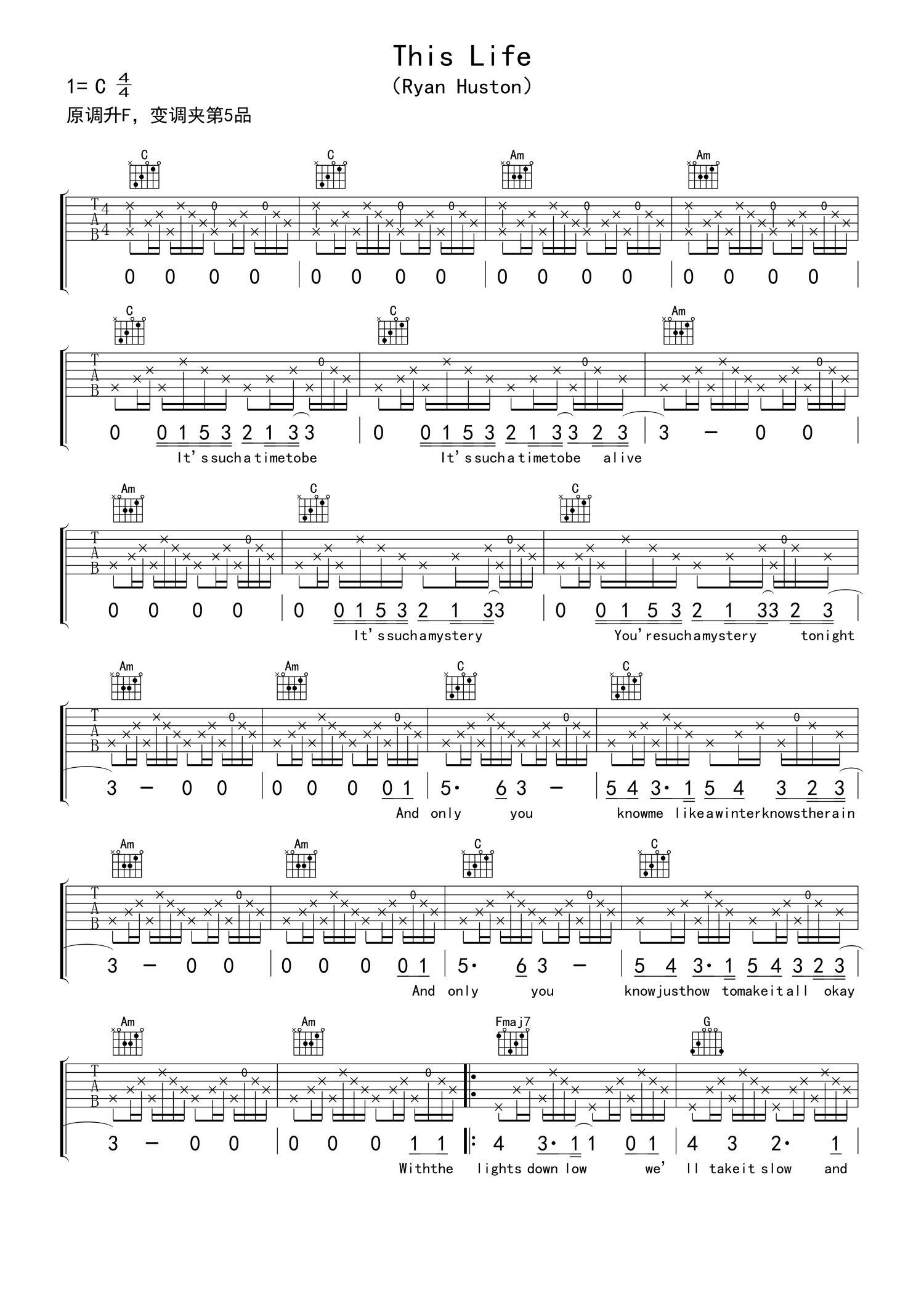 • This Life吉他谱 - Ryan Huston - C调吉他弹唱谱第1张