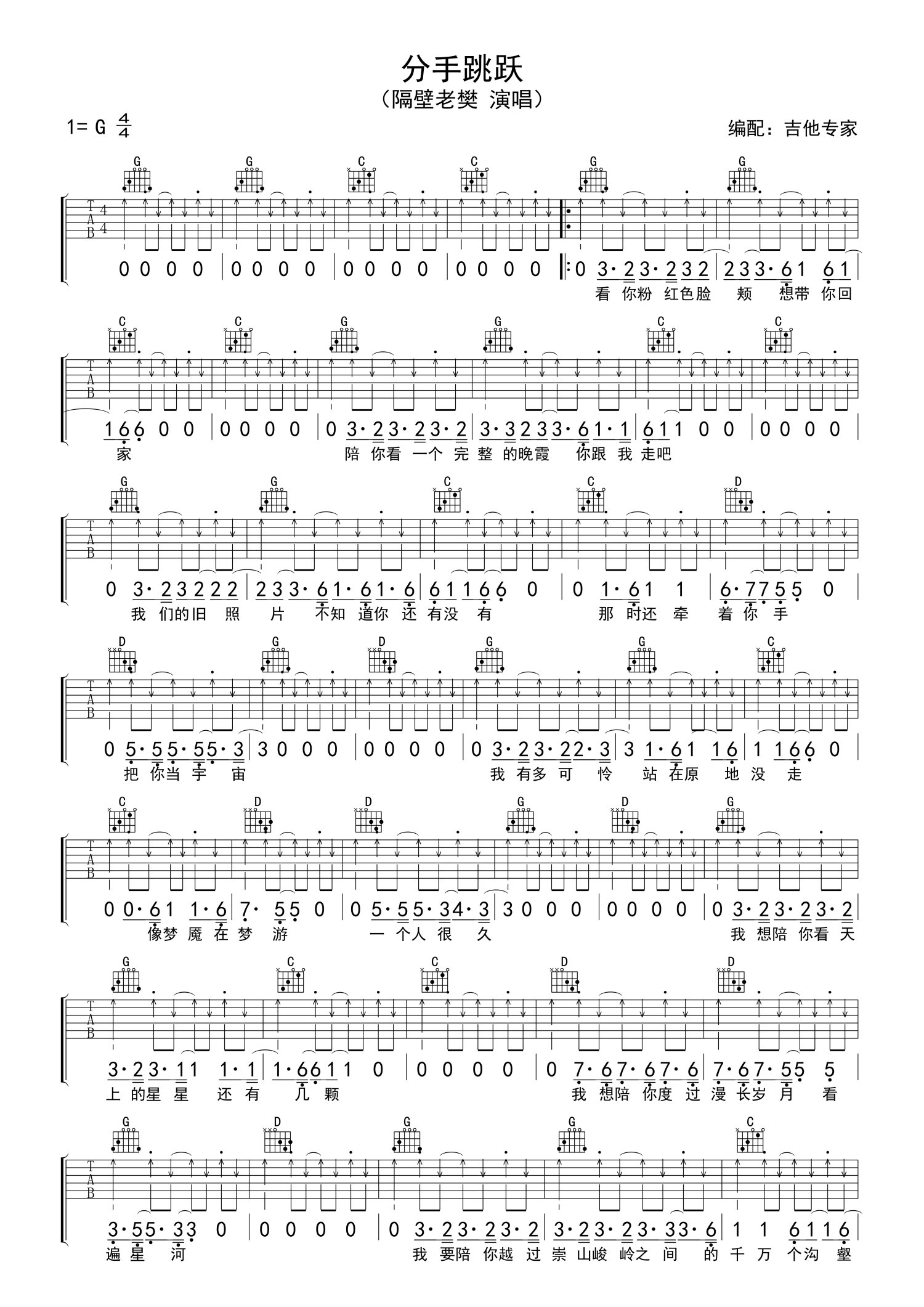 • 分手跳跃吉他谱 - 隔壁老樊 - G调吉他弹唱谱第1张