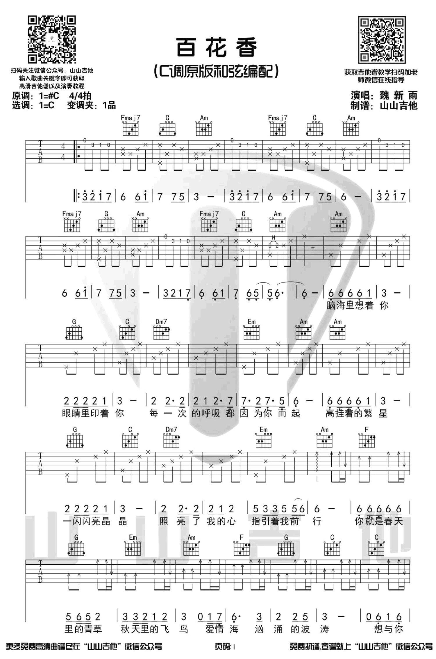 百花香吉他谱 - 魏新雨 - C调吉他弹唱谱 - 原版带前奏