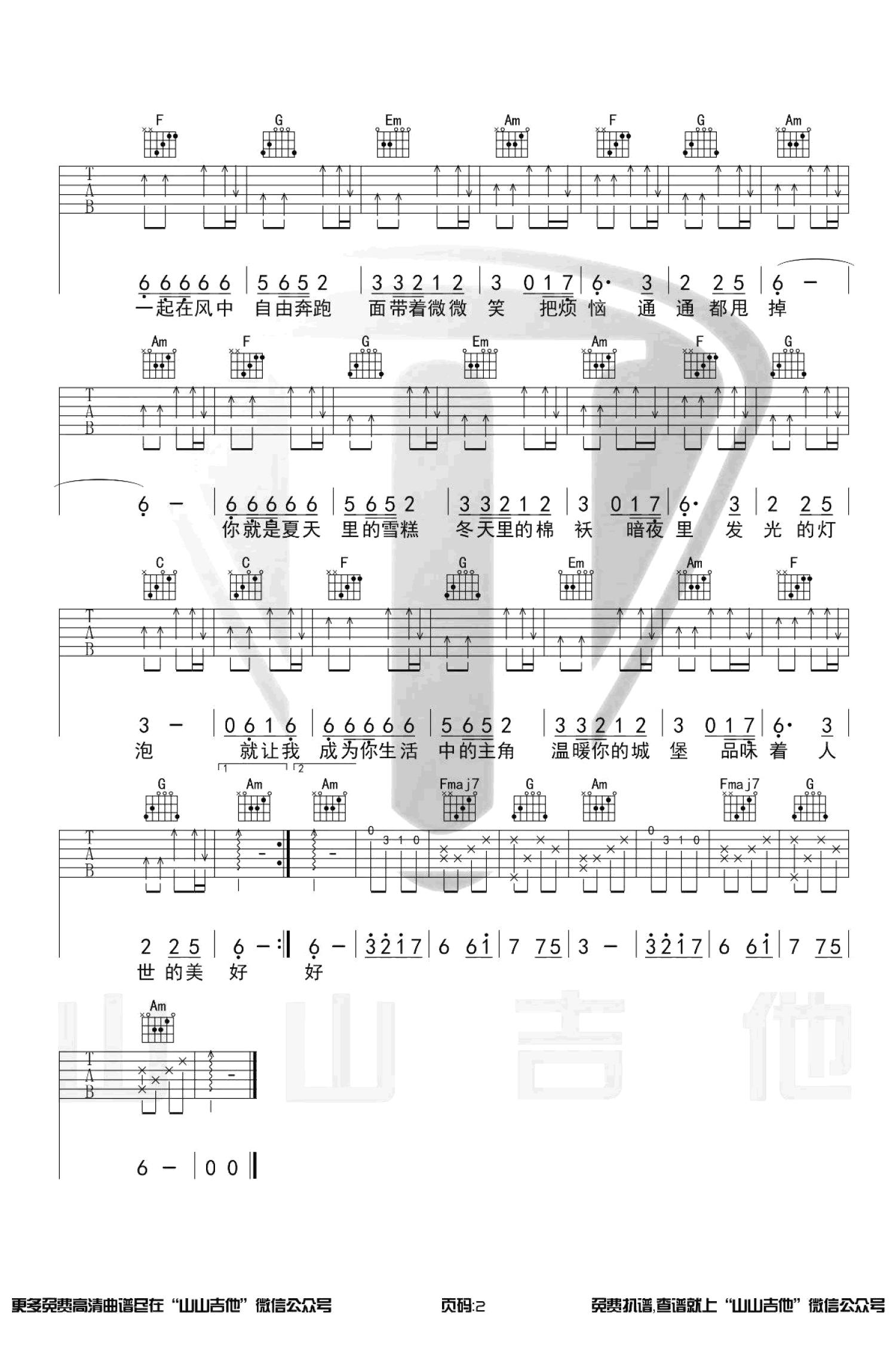 吉他弹唱C调来源:山山吉他1165 浏览2020-10-28 23:07发布图谱共2页