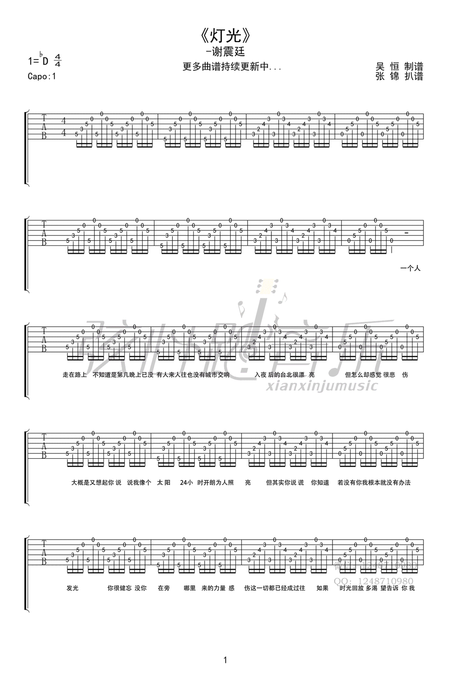 灯光吉他谱 - 谢震廷 - C调吉他弹唱谱