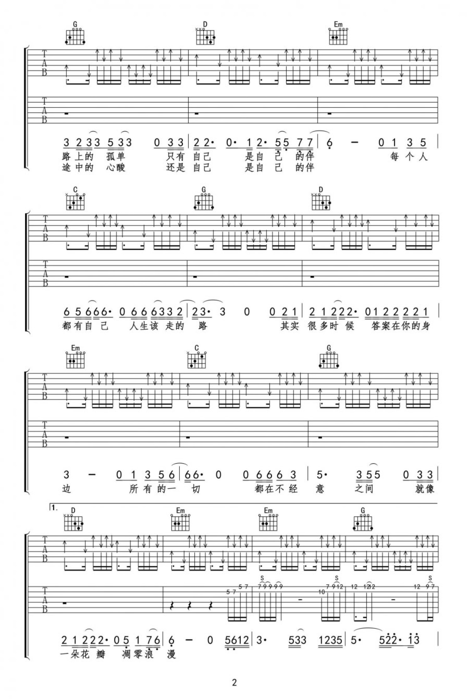 当前位置:琴谱网>吉他弹唱>该走的路