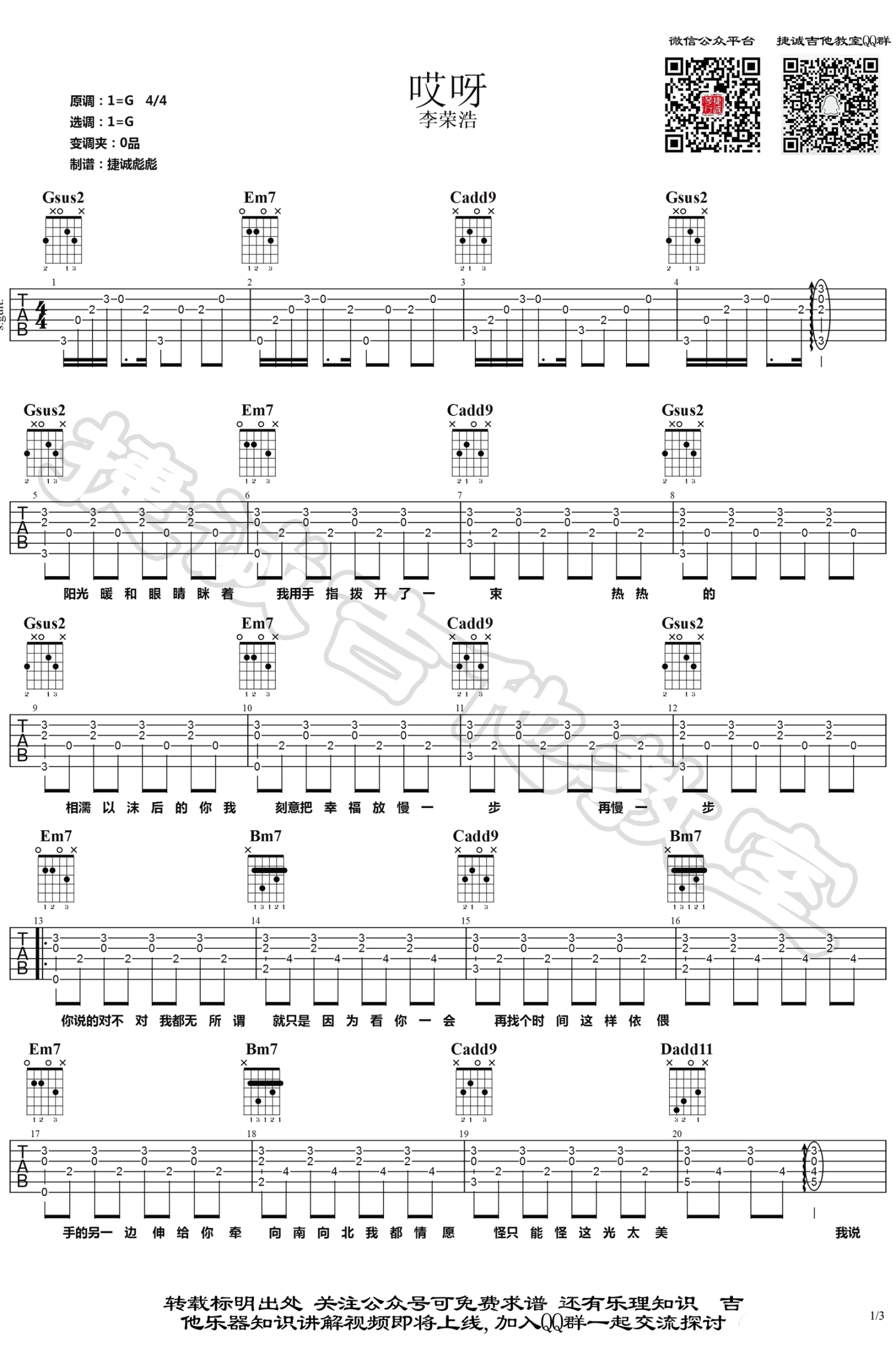 哎呀吉他谱 - 李荣浩 - G调吉他弹唱谱