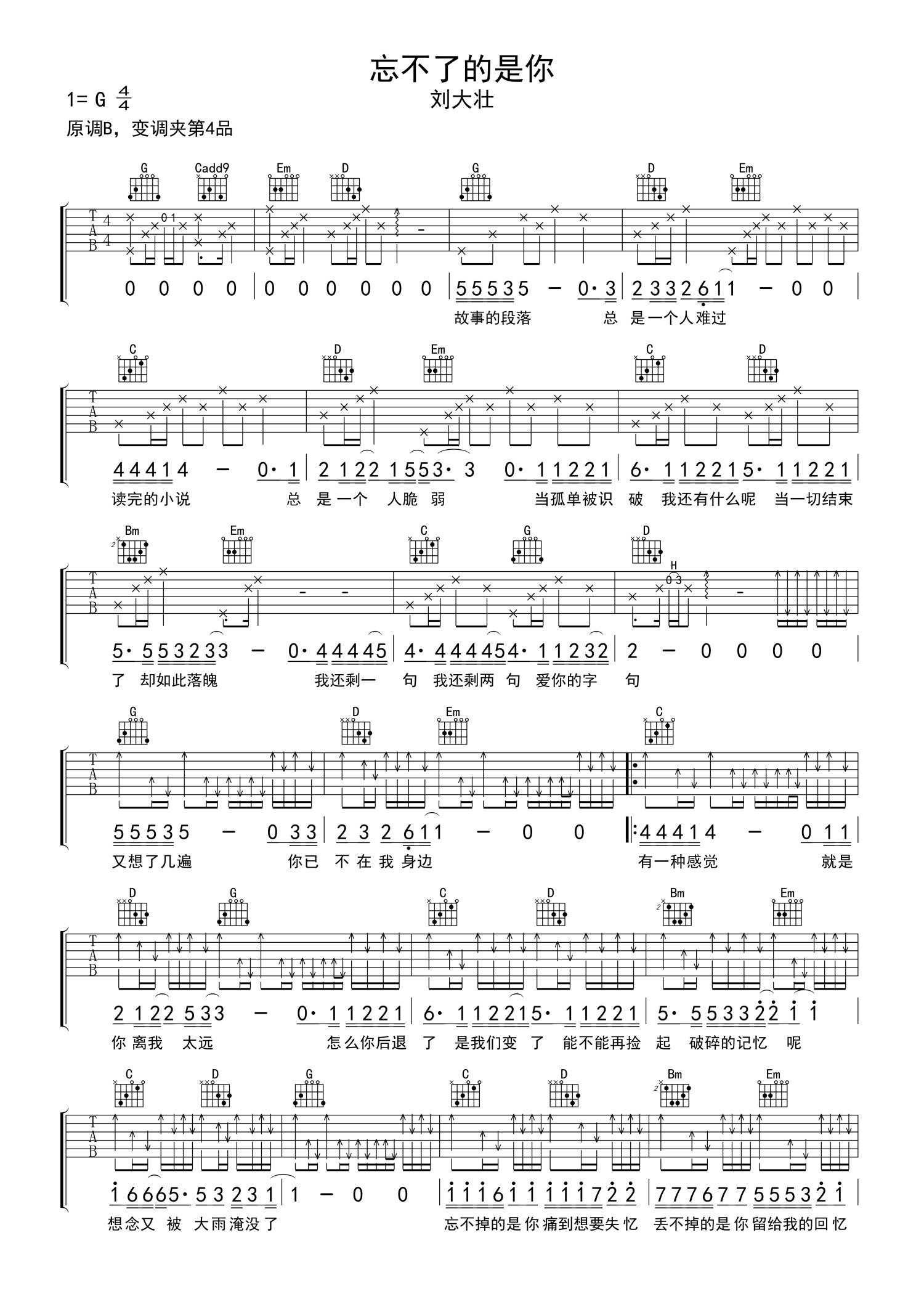 • 忘不了的是你吉他谱 - 刘大壮 - G调吉他弹唱谱第1张