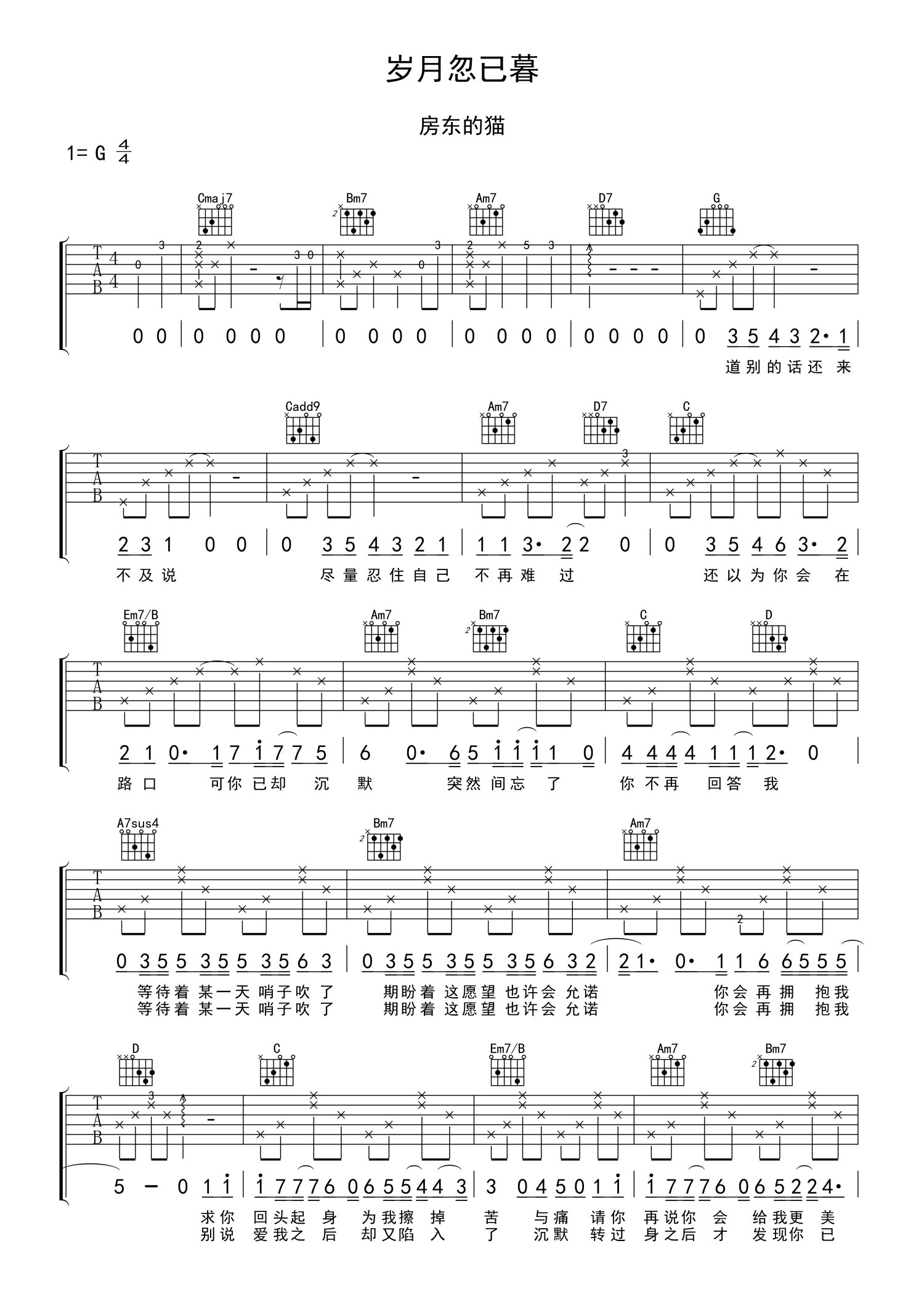 • 岁月忽已暮吉他谱 - 房东的猫 - G调吉他弹唱谱第1张