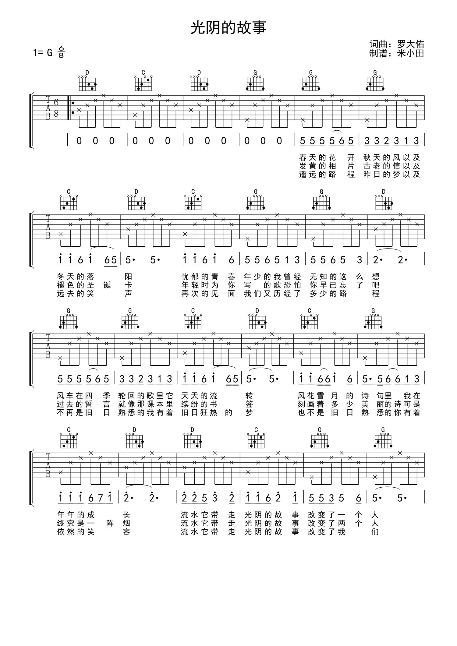 • 光阴的故事吉他谱 - 罗大佑 - G调吉他弹唱谱第1张