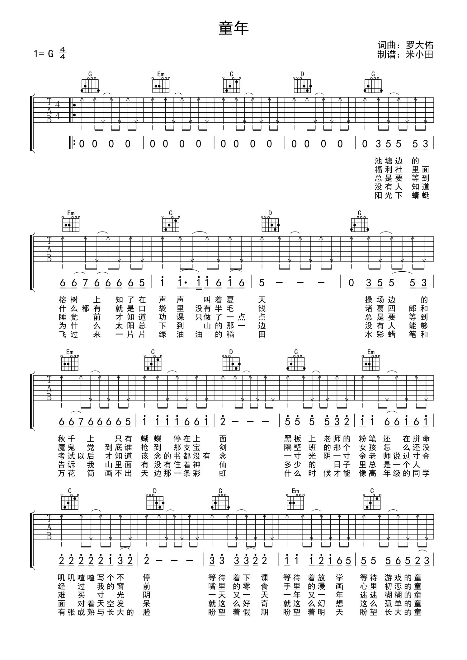 • 童年吉他谱 - 罗大佑 - G调吉他弹唱谱第1张