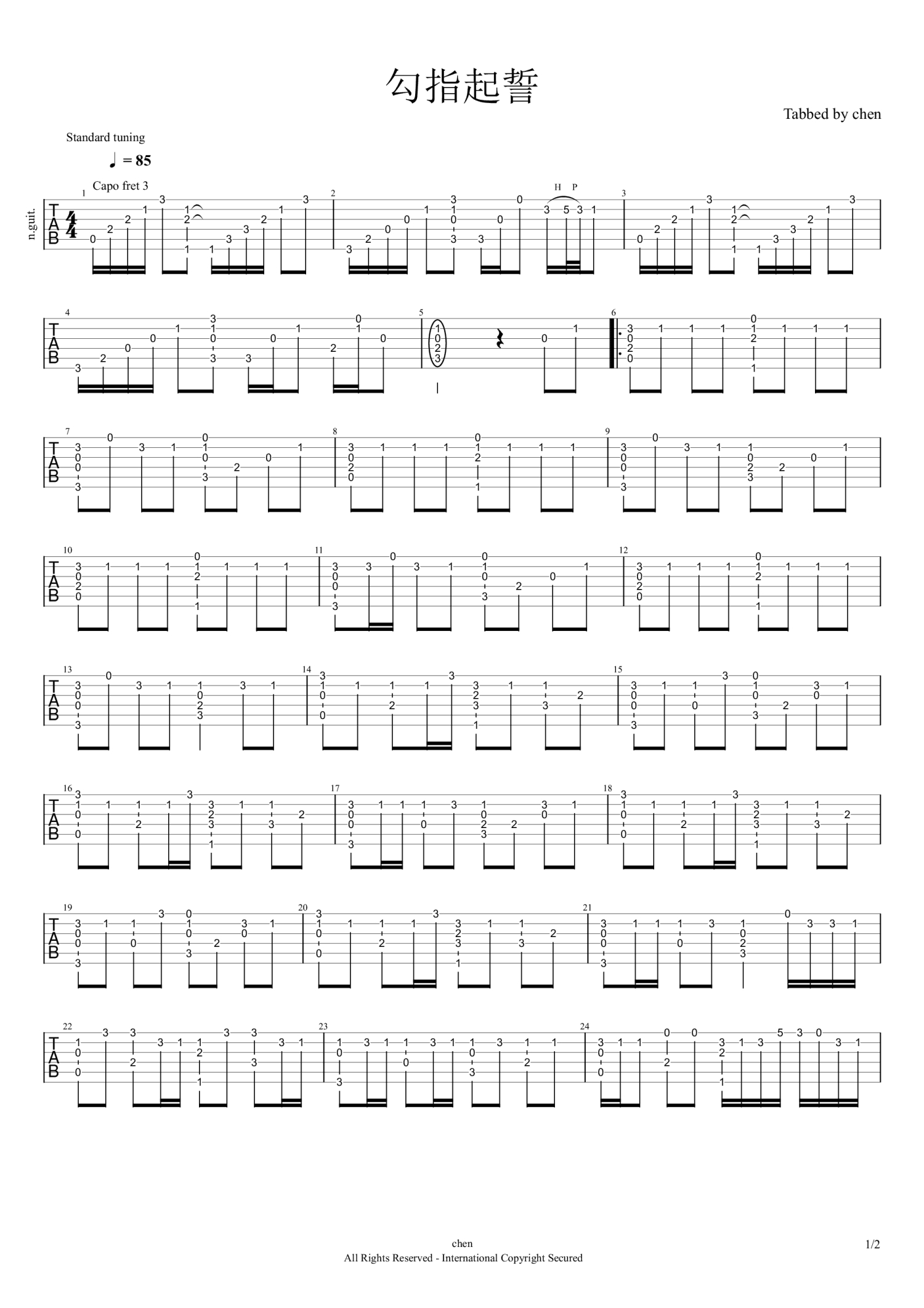 当前位置:琴谱网>吉他独奏>勾指起誓
