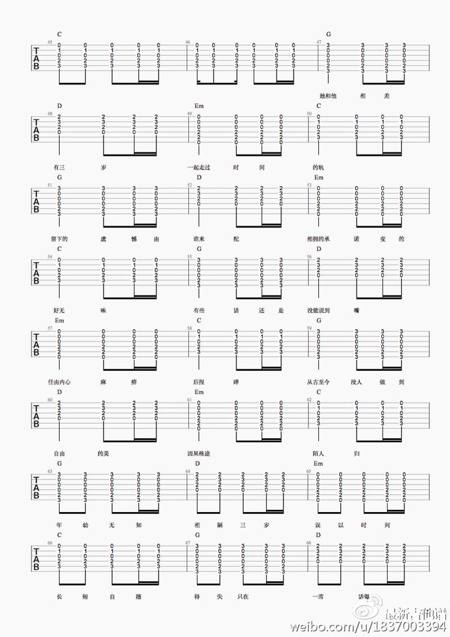 吉他弹唱G调来源:最新吉他869 浏览2018-03-19 13:34发布图谱共5页