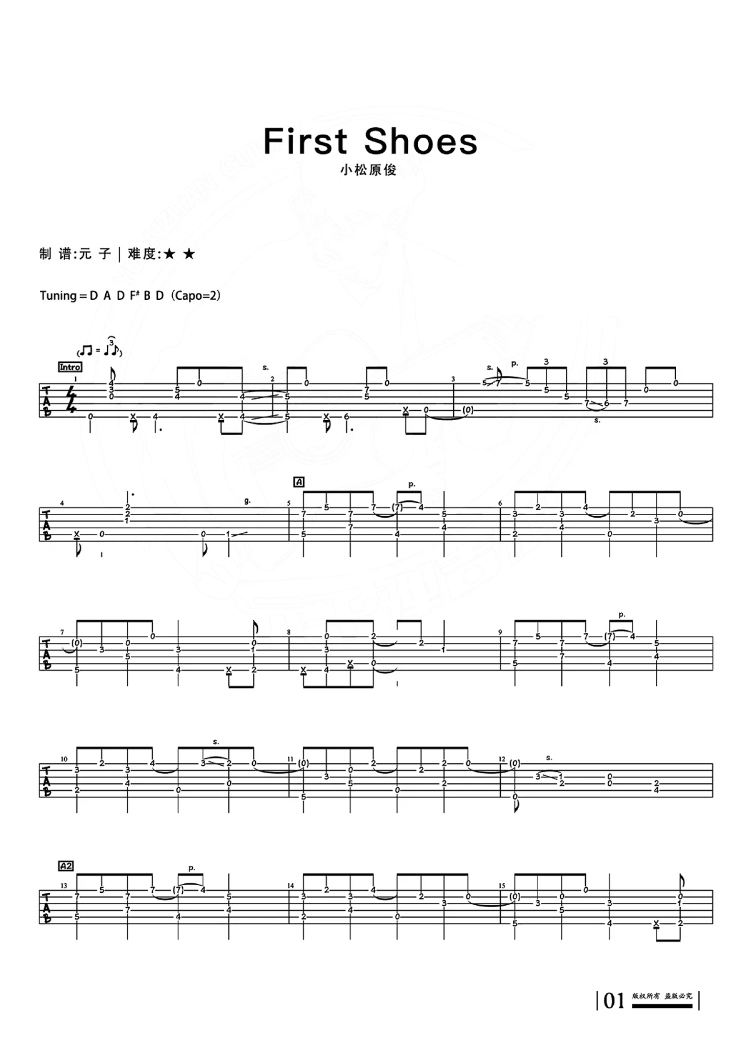 曲谱介绍: 小松《first shoes》吉他谱_C调吉他独奏谱