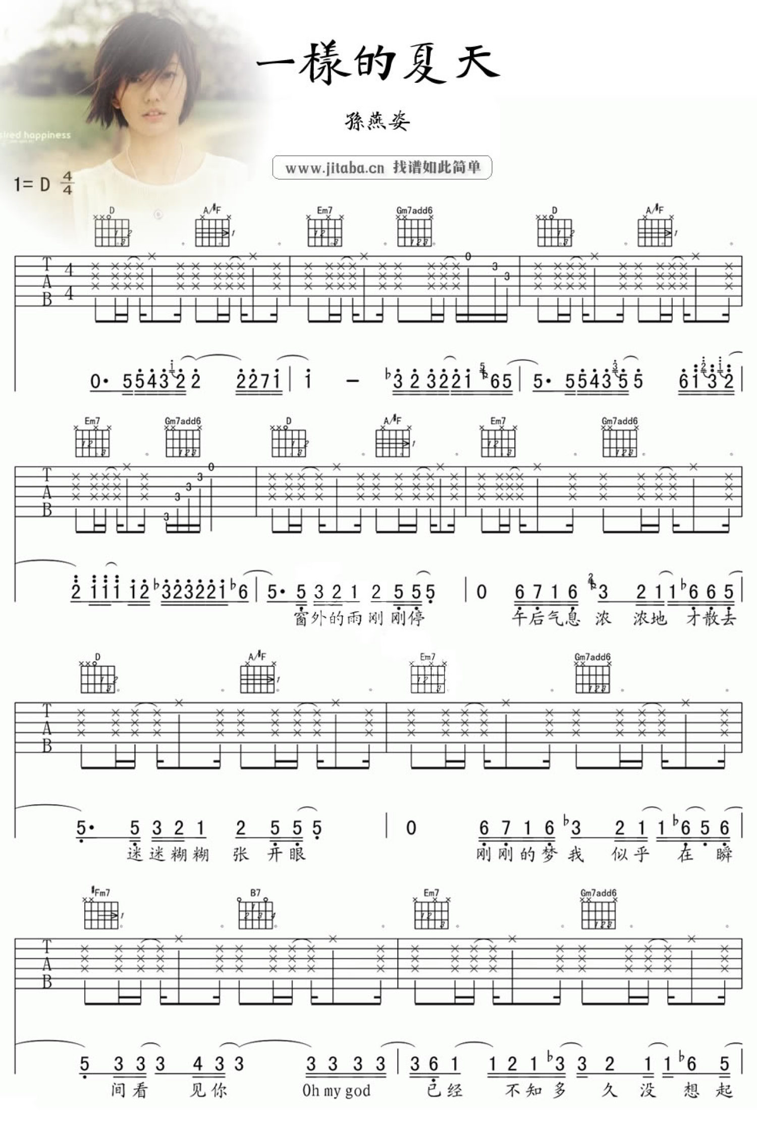 一样的夏天吉他谱 - 孙燕姿 - D调吉他弹唱谱