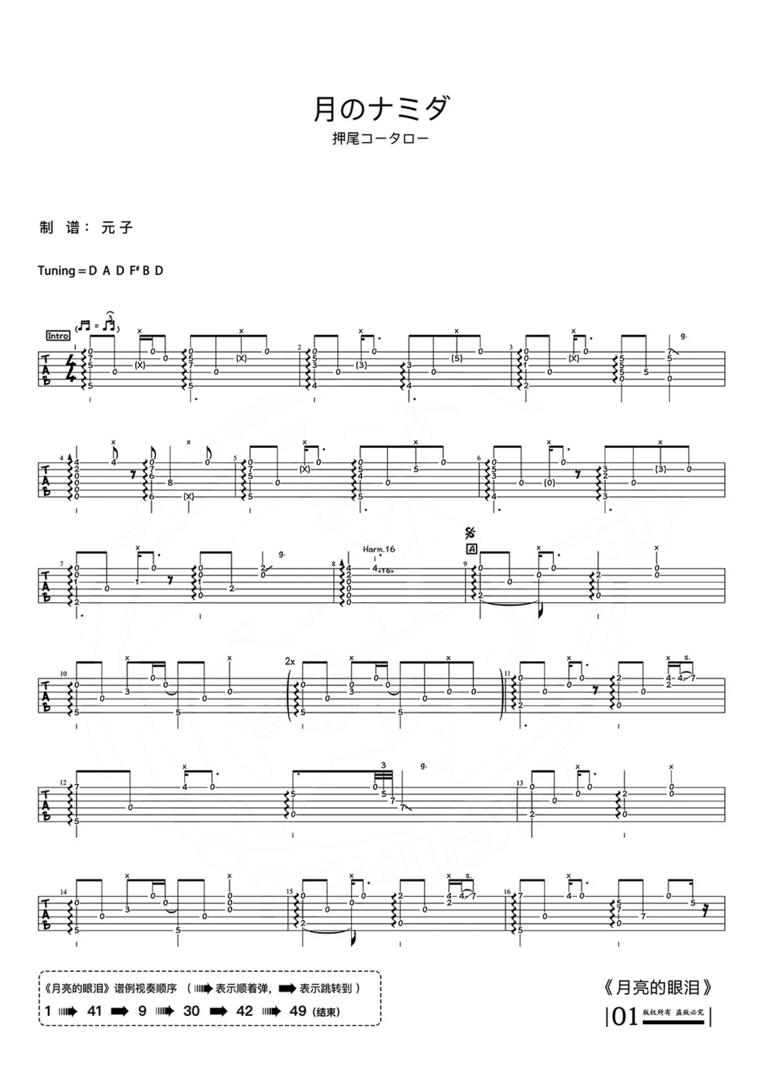 曲谱介绍: 押尾《月亮的眼泪》吉他谱_C调吉他独奏谱