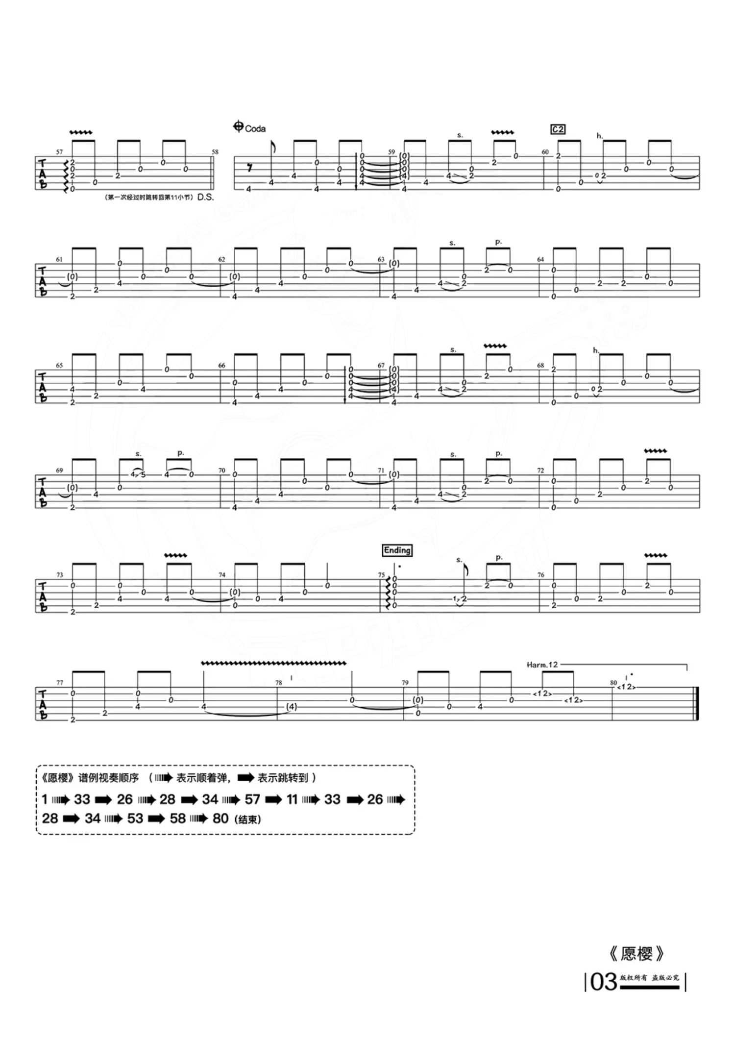 曲谱介绍: gin《愿樱》吉他谱_C调吉他独奏谱