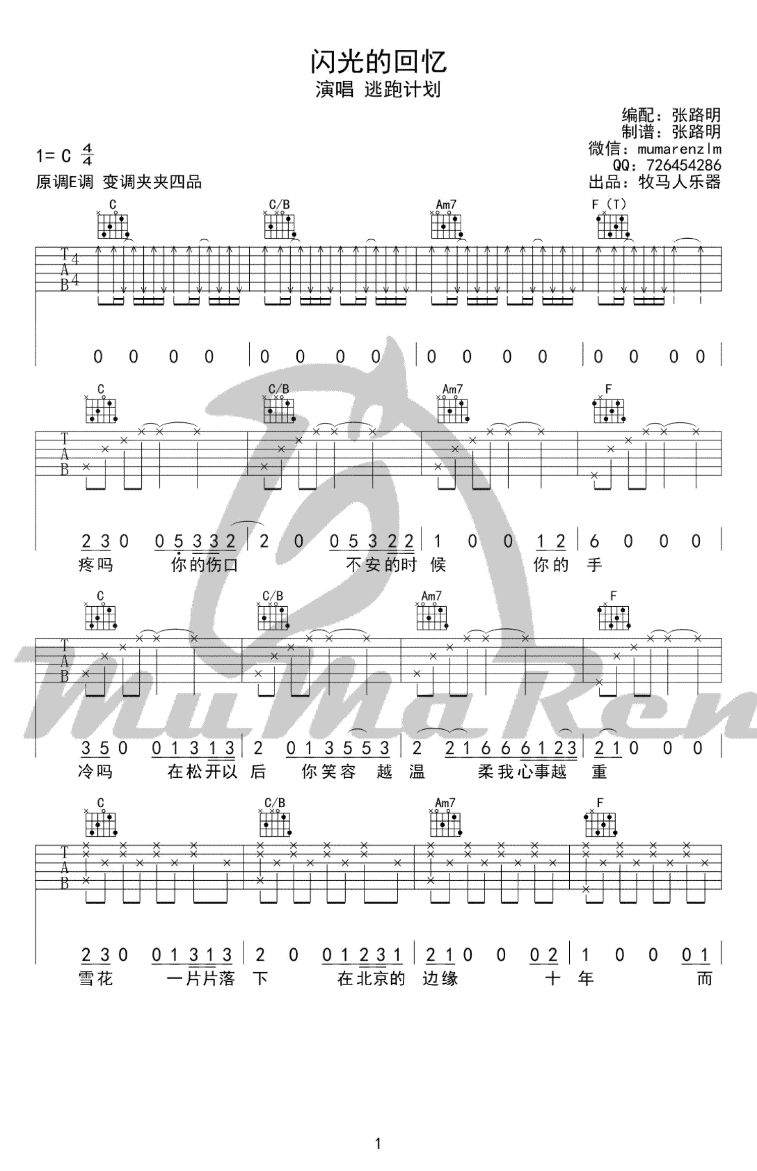当前位置:琴谱网>吉他弹唱>闪光的回忆