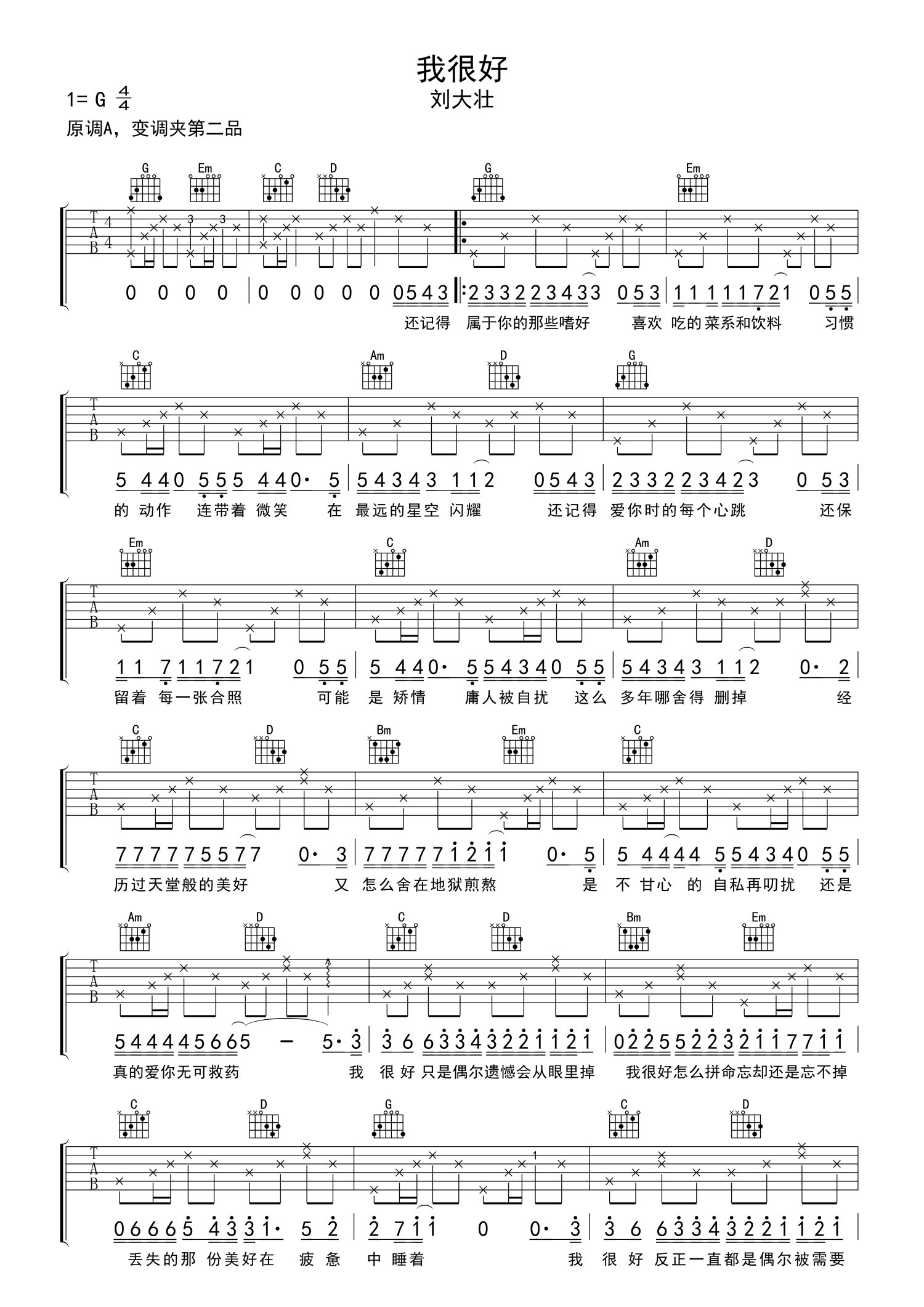 • 我很好吉他谱 - 刘大壮 - G调吉他弹唱谱第1张