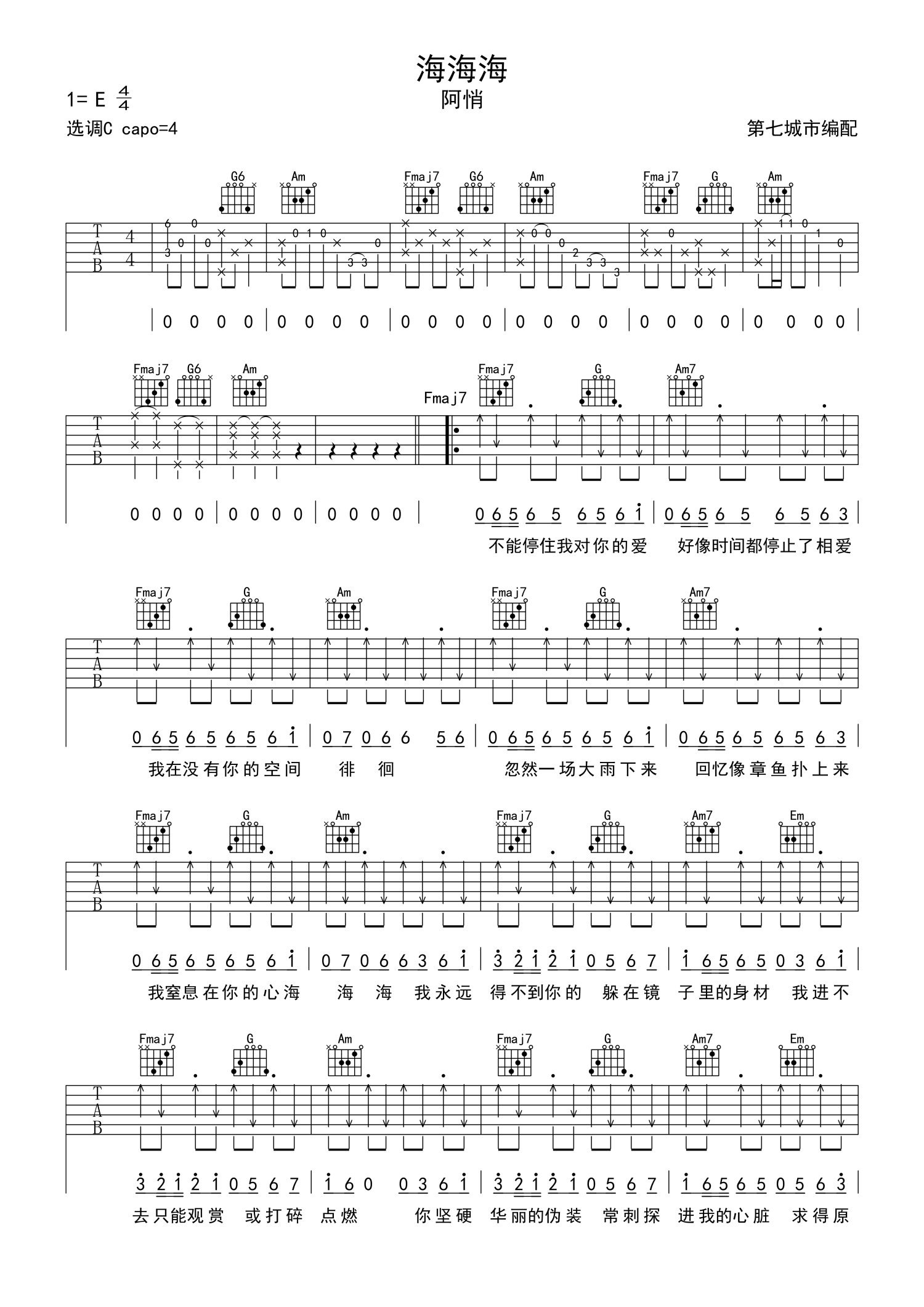 • 海海海吉他谱 - 阿悄 - C调吉他弹唱谱第1张