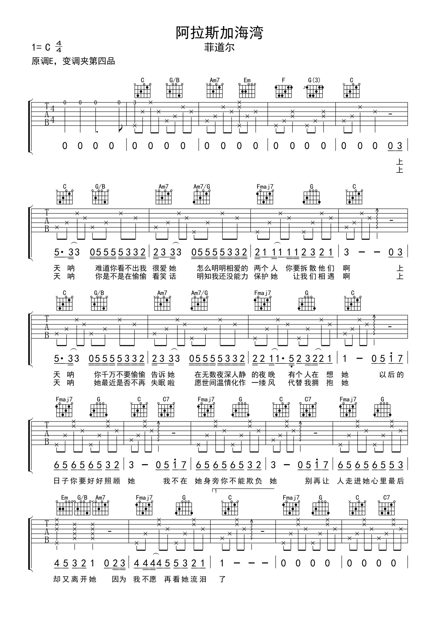 • 阿拉斯加海湾吉他谱 - 菲道尔 - C调吉他弹唱谱第1张