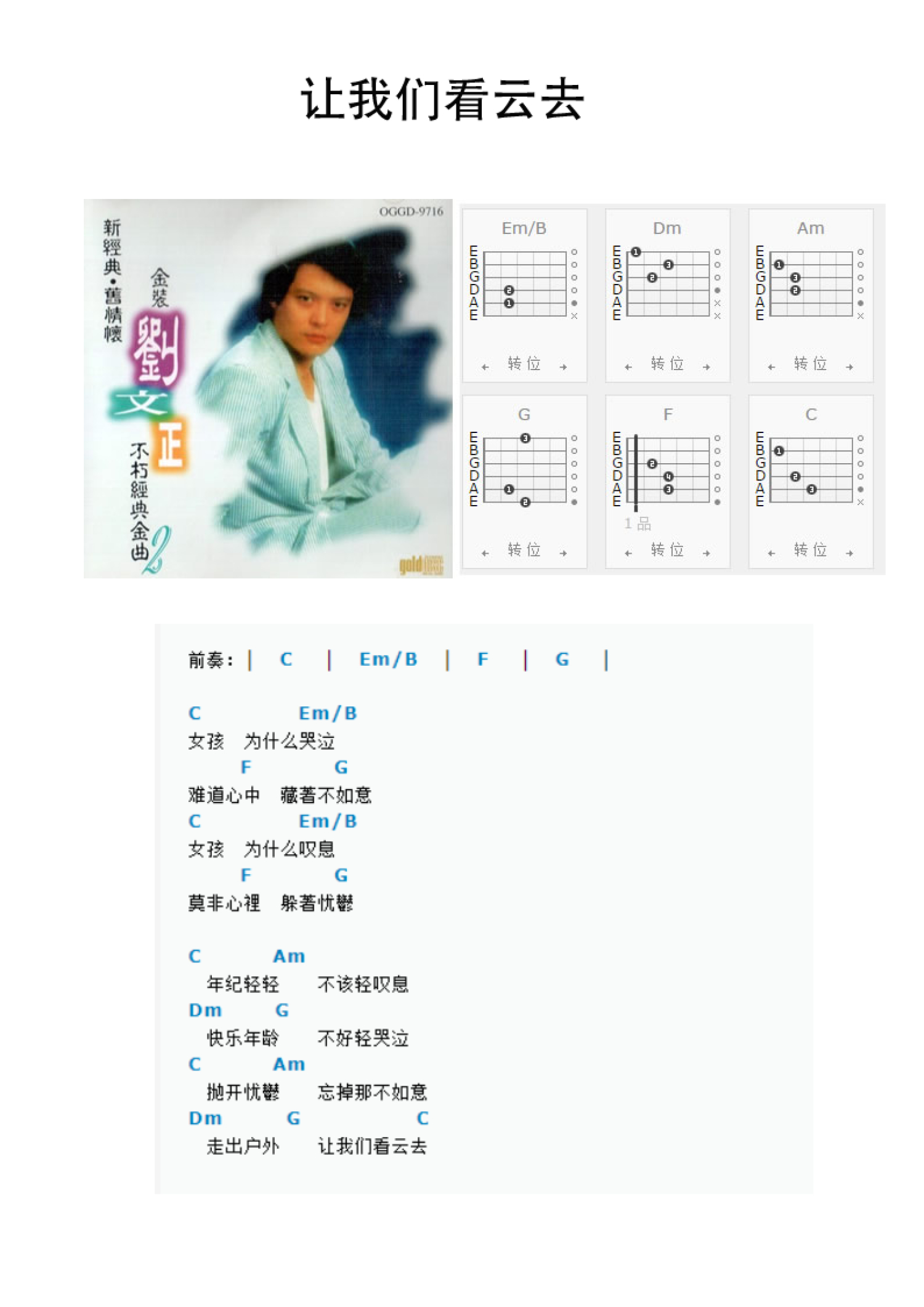 让我们看云去吉他谱 - 刘文正 - C调吉他弹唱谱 - 和弦谱