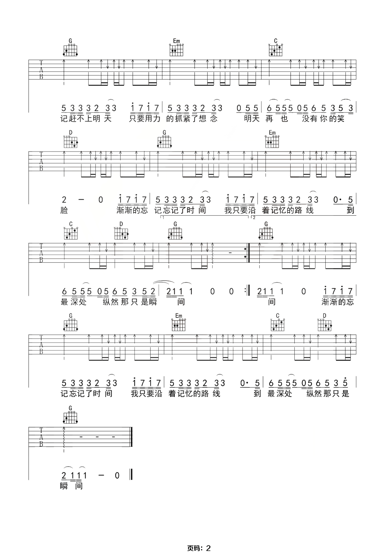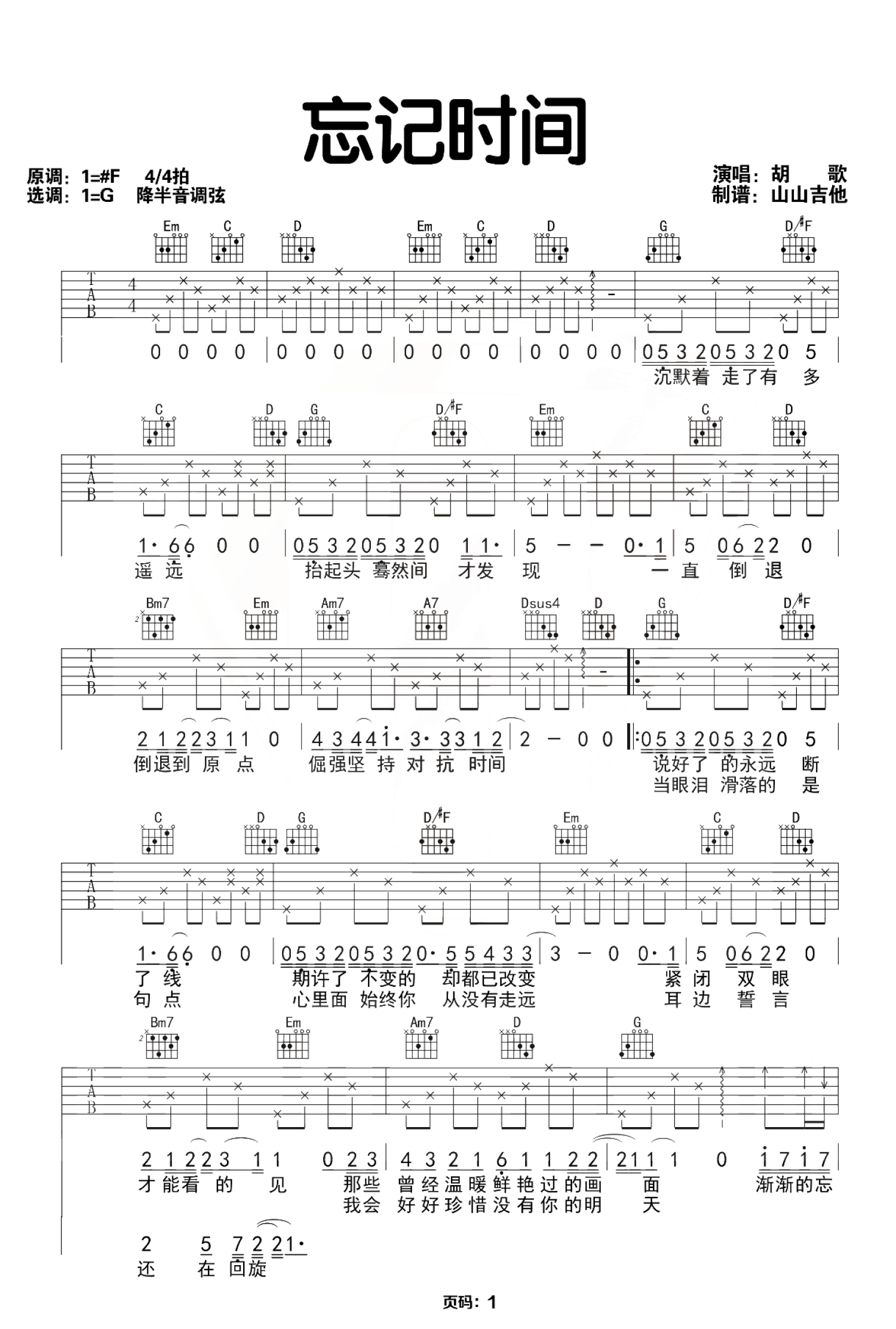 曲谱介绍: 胡歌《忘记时间》吉他谱_G调吉他弹唱谱