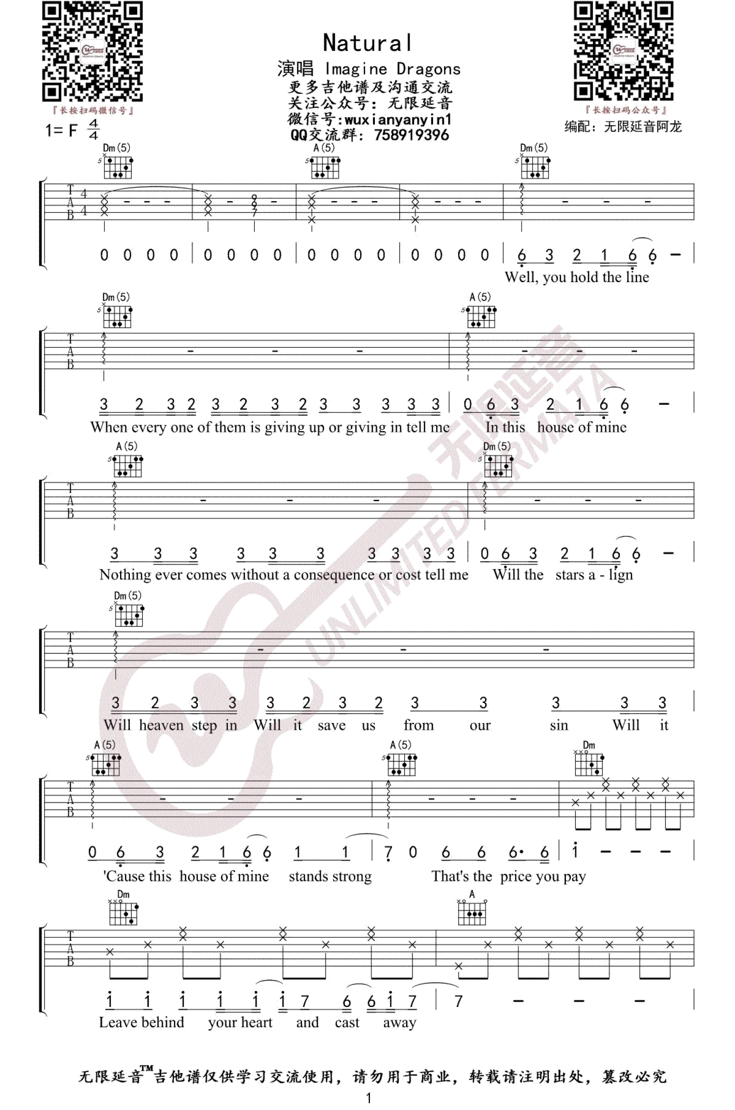 Natural吉他谱 - Imagine Dragons - F调吉他弹唱谱