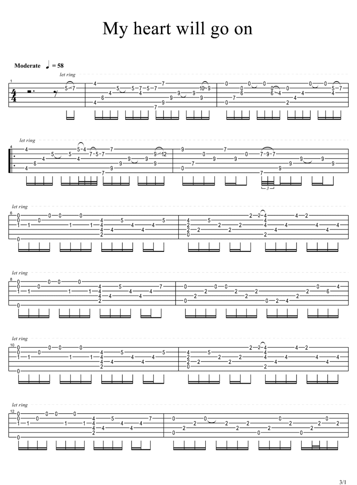 我心永恒吉他谱 - 泰坦尼克号 - 吉他独奏谱