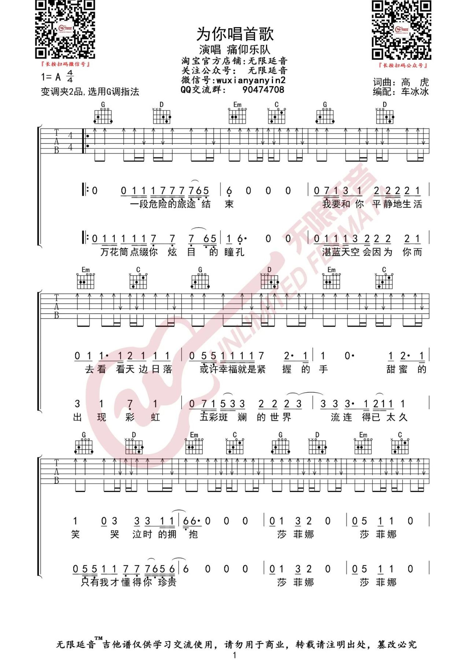 为你唱首歌吉他谱 - 痛仰乐队 - G调吉他弹唱谱