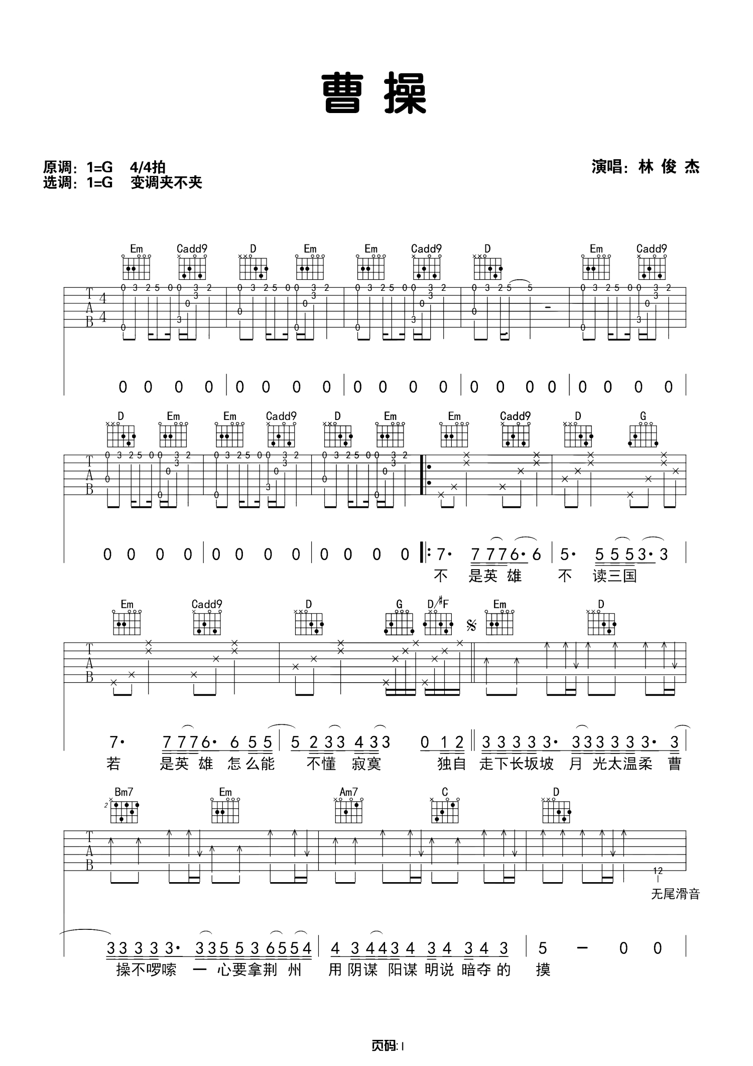 曲谱介绍: 林俊杰《曹操》吉他谱_C调吉他弹唱谱