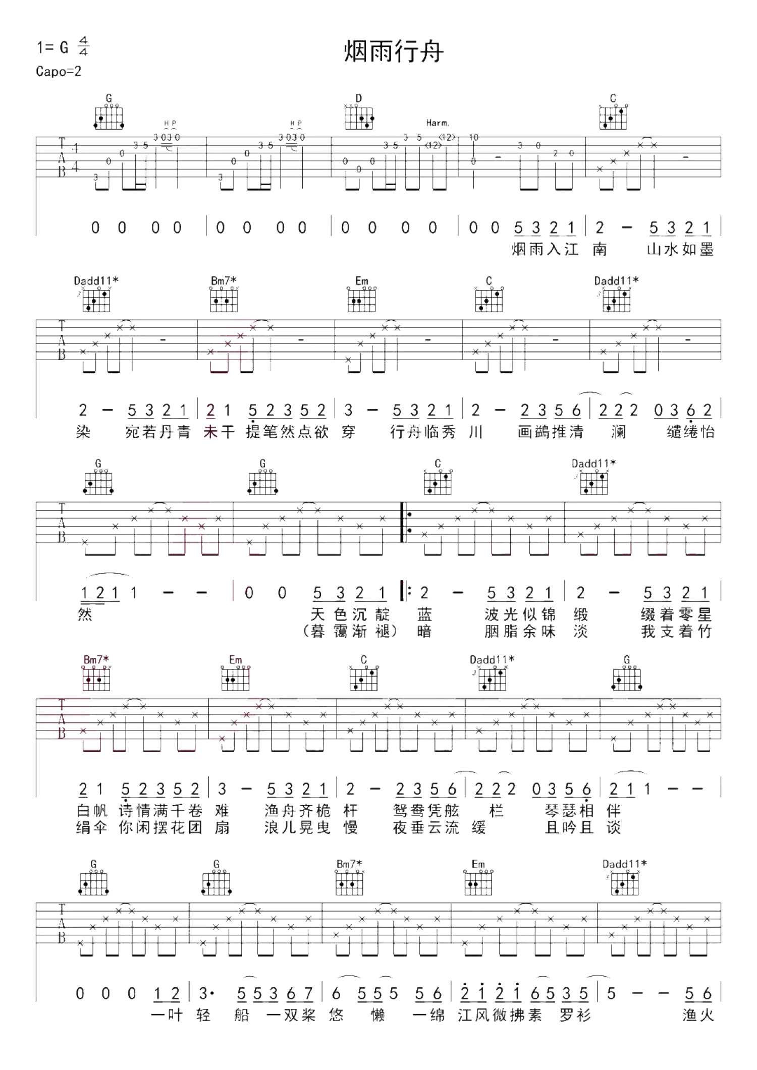 曲谱介绍: 伦桑、司南《烟雨行舟》吉他谱_G调吉他弹唱谱