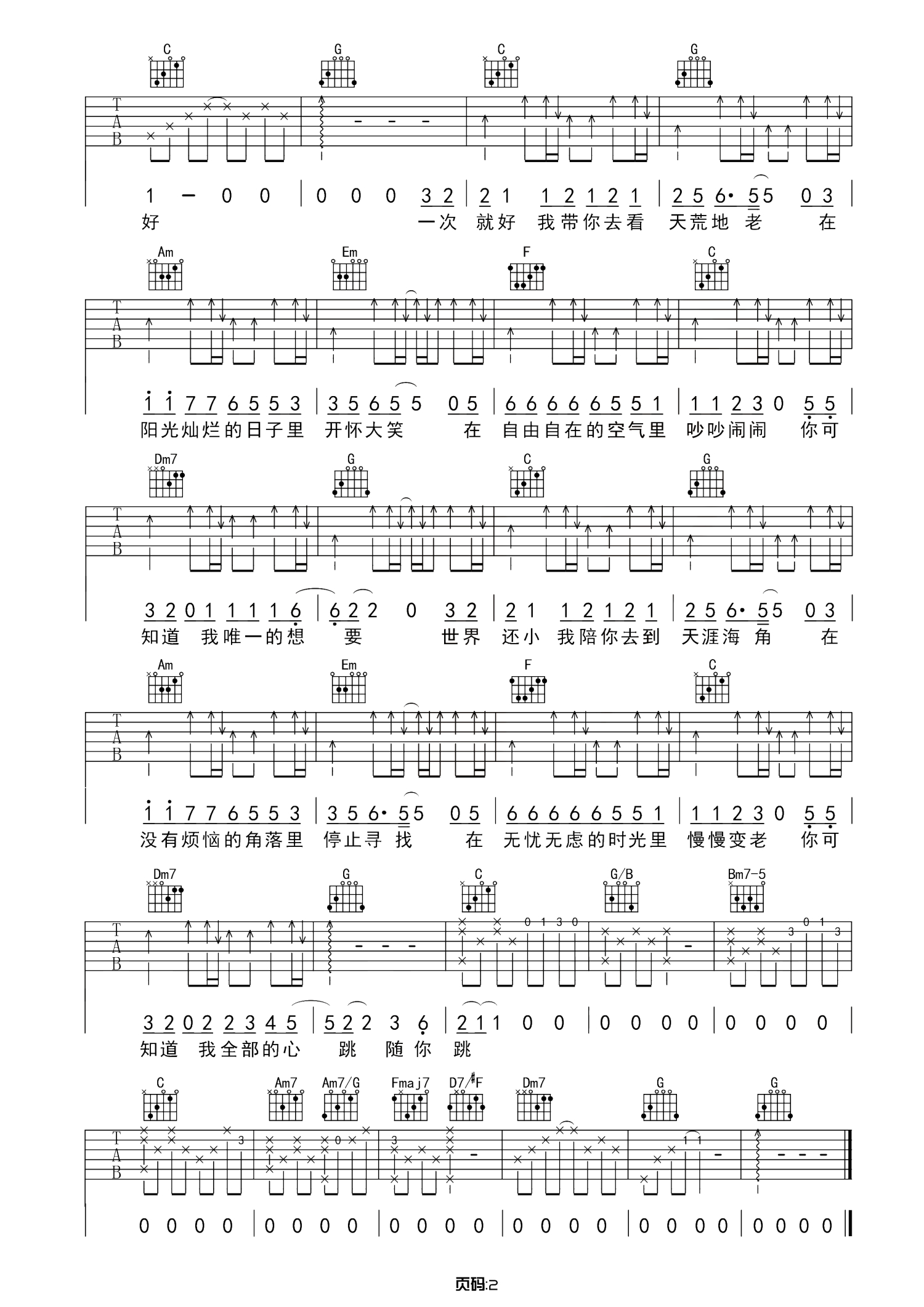 曲谱介绍: 杨宗纬《一次就好》吉他谱_C调吉他弹唱谱