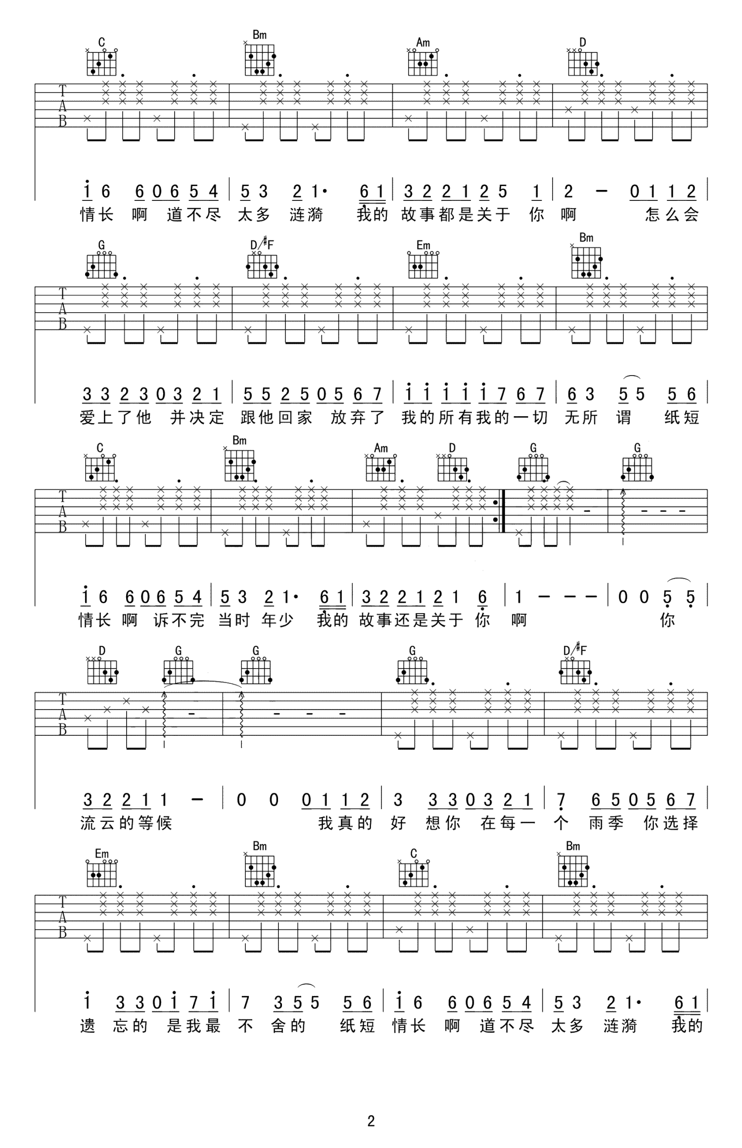 当前位置:琴谱网>吉他弹唱>纸短情长