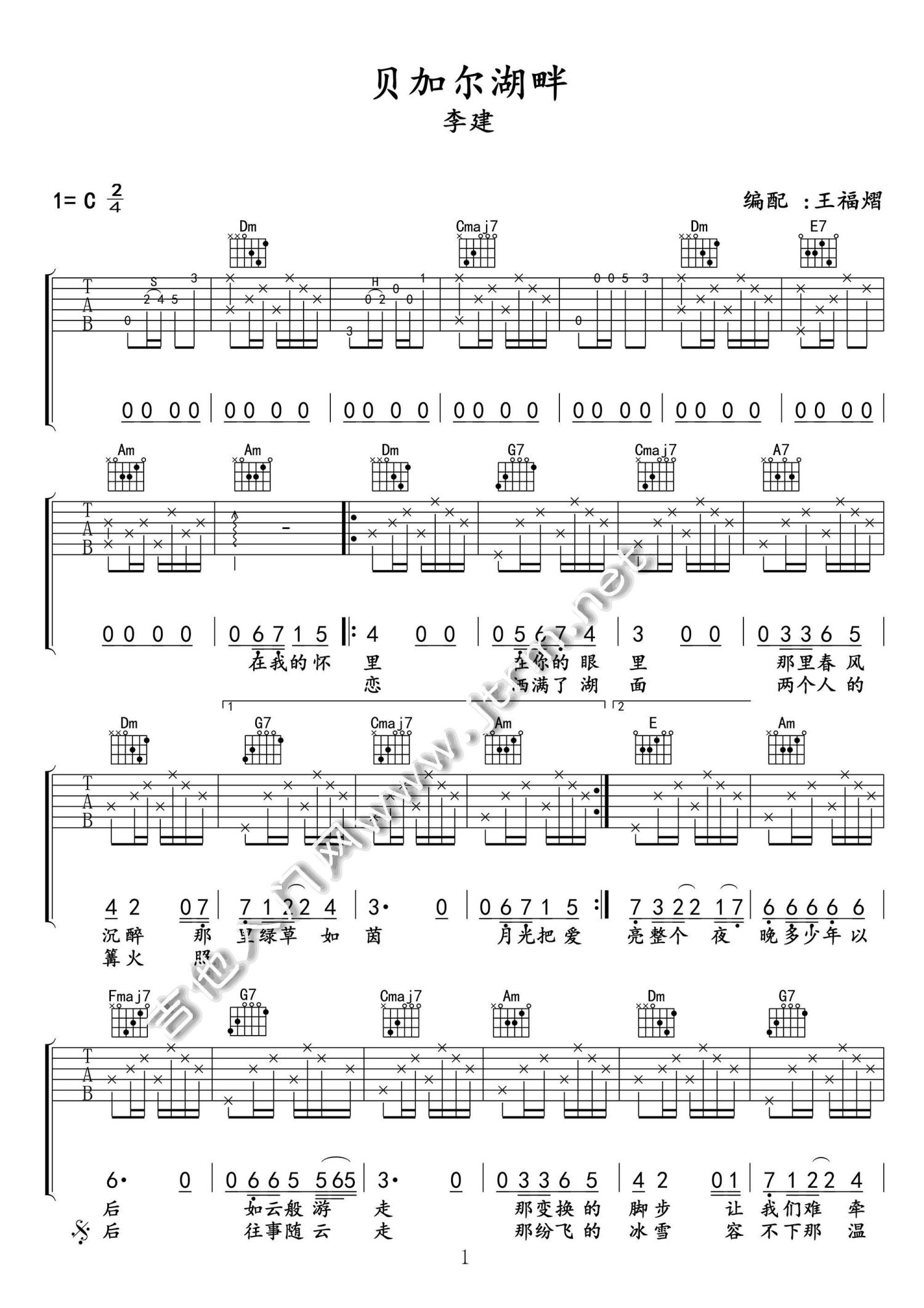 曲谱介绍: 李健《贝加尔湖畔》,干净梦幻的声音让大家深深难忘,极具画面感的旋律像是把听众带到一个世外桃源,内心慢慢平静,享受着贝加尔湖畔的无垠的静谧,C调指法简单版。这首歌的难点在于前奏部分,和弦分解之外穿插一些滑音和旋律音,其他地方比较简单,照着谱子就能轻松演奏。大家可以根据自己的音域调整变调夹的位置,在高潮部分也可以自己调整为扫弦伴奏。