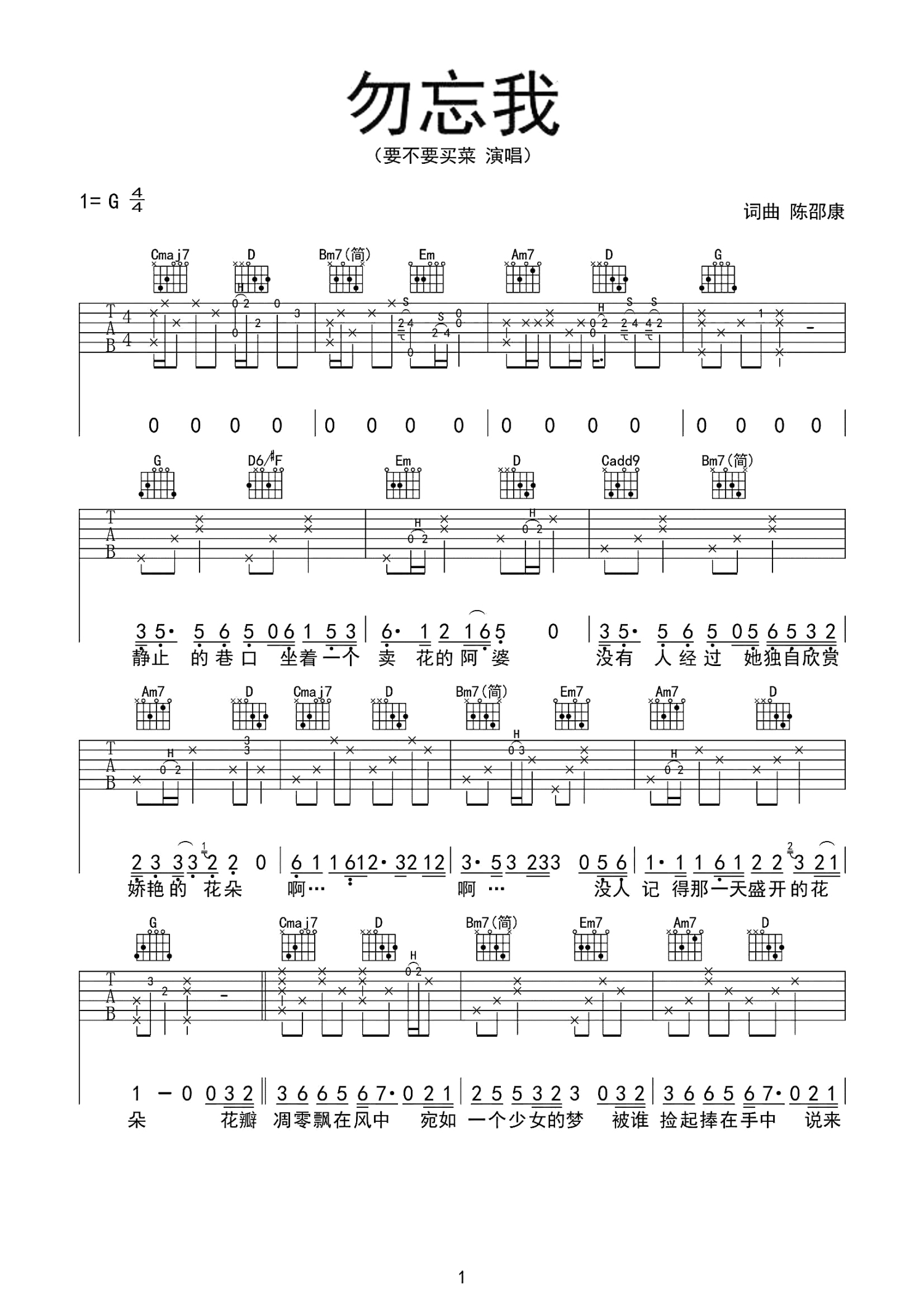 勿忘我吉他谱 - 要不要买菜 - G调吉他弹唱谱