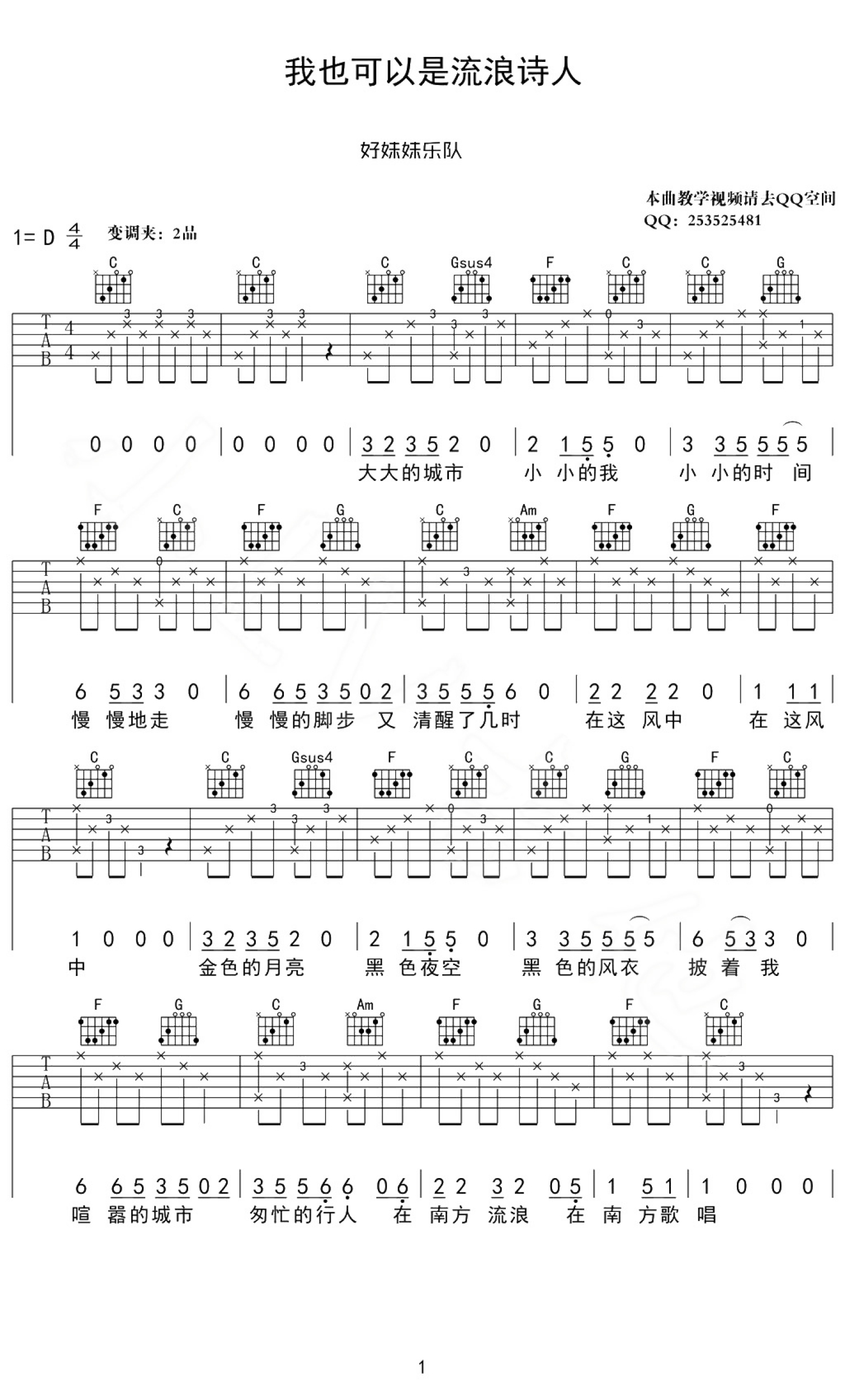 我也可以是流浪诗人吉他谱 - 好妹妹乐队 - 吉他弹唱谱