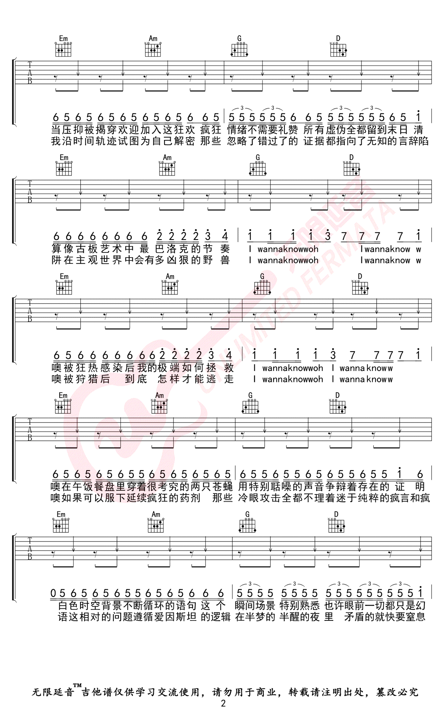 当前位置:琴谱网>吉他弹唱>疯人院