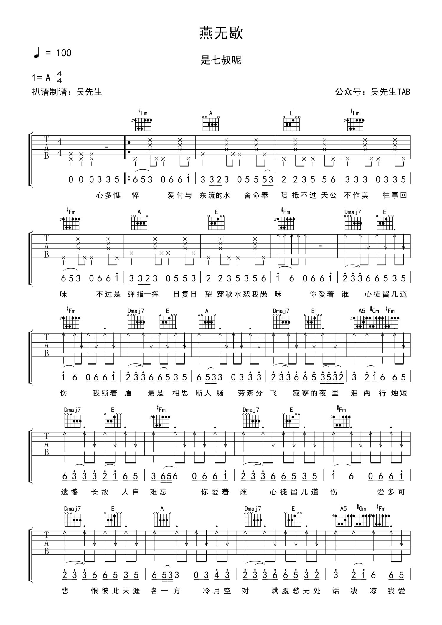 • 燕无歇吉他谱 - 是七叔呢 - A调吉他弹唱谱第1张