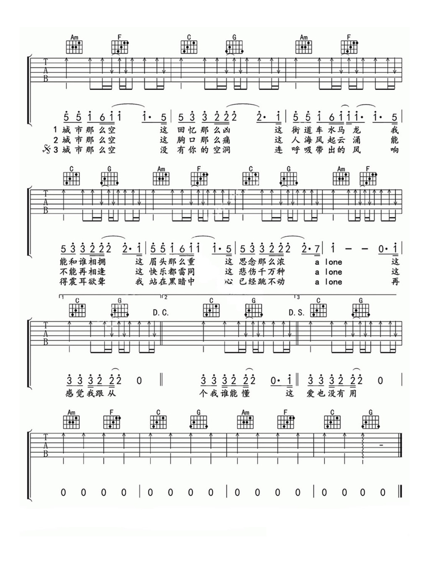 空城吉他谱 - 金志文/杨坤 - C调吉他弹唱谱