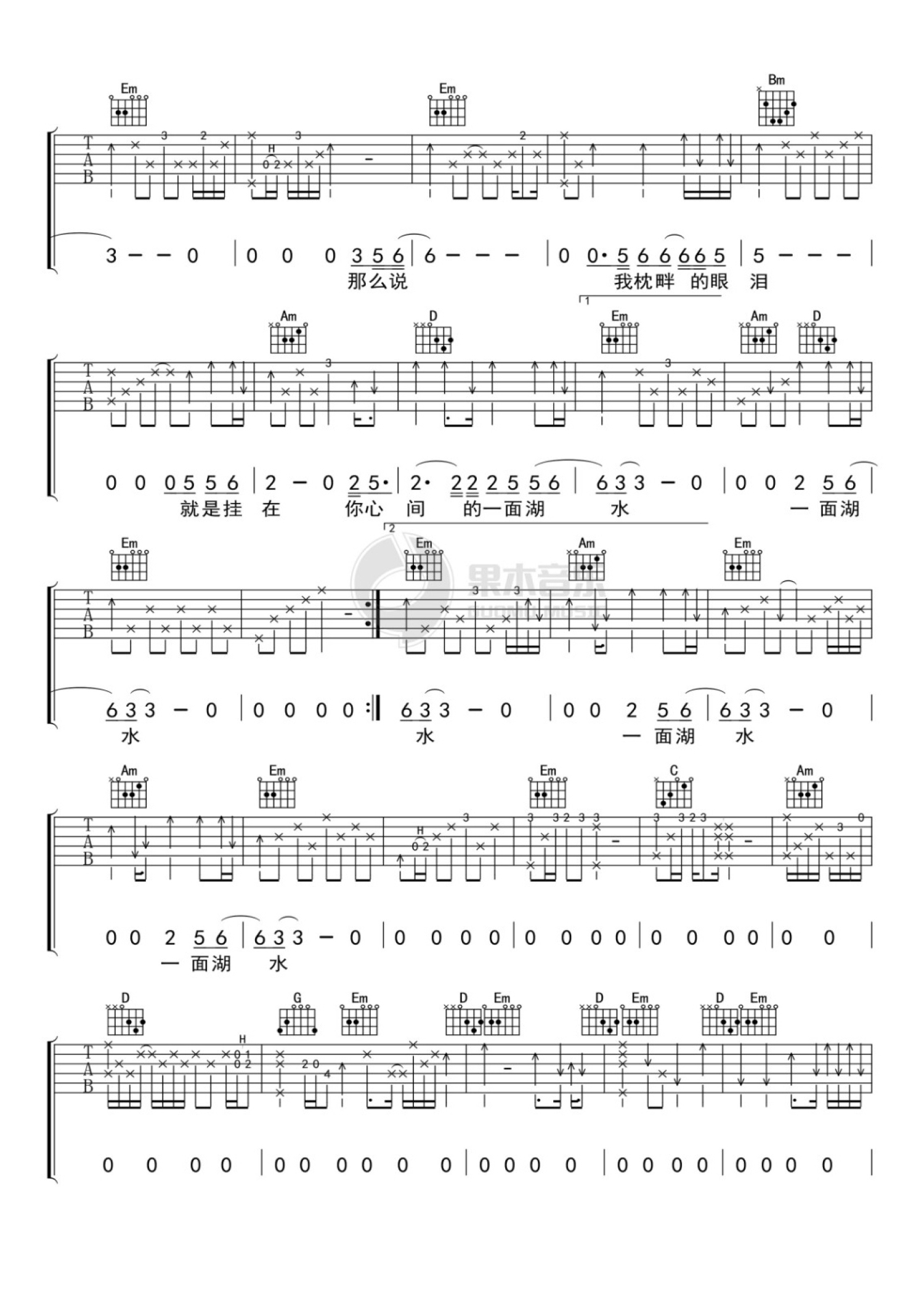当前位置:琴谱网>吉他弹唱>一面湖水自己的沙场