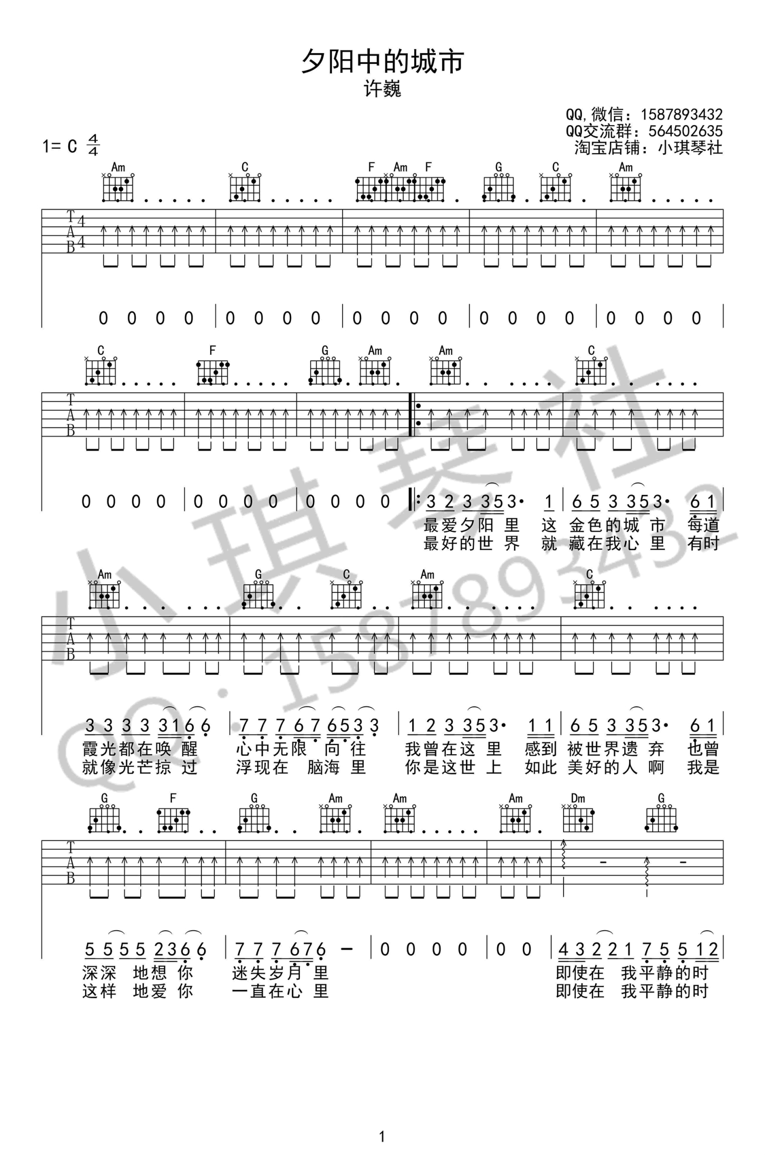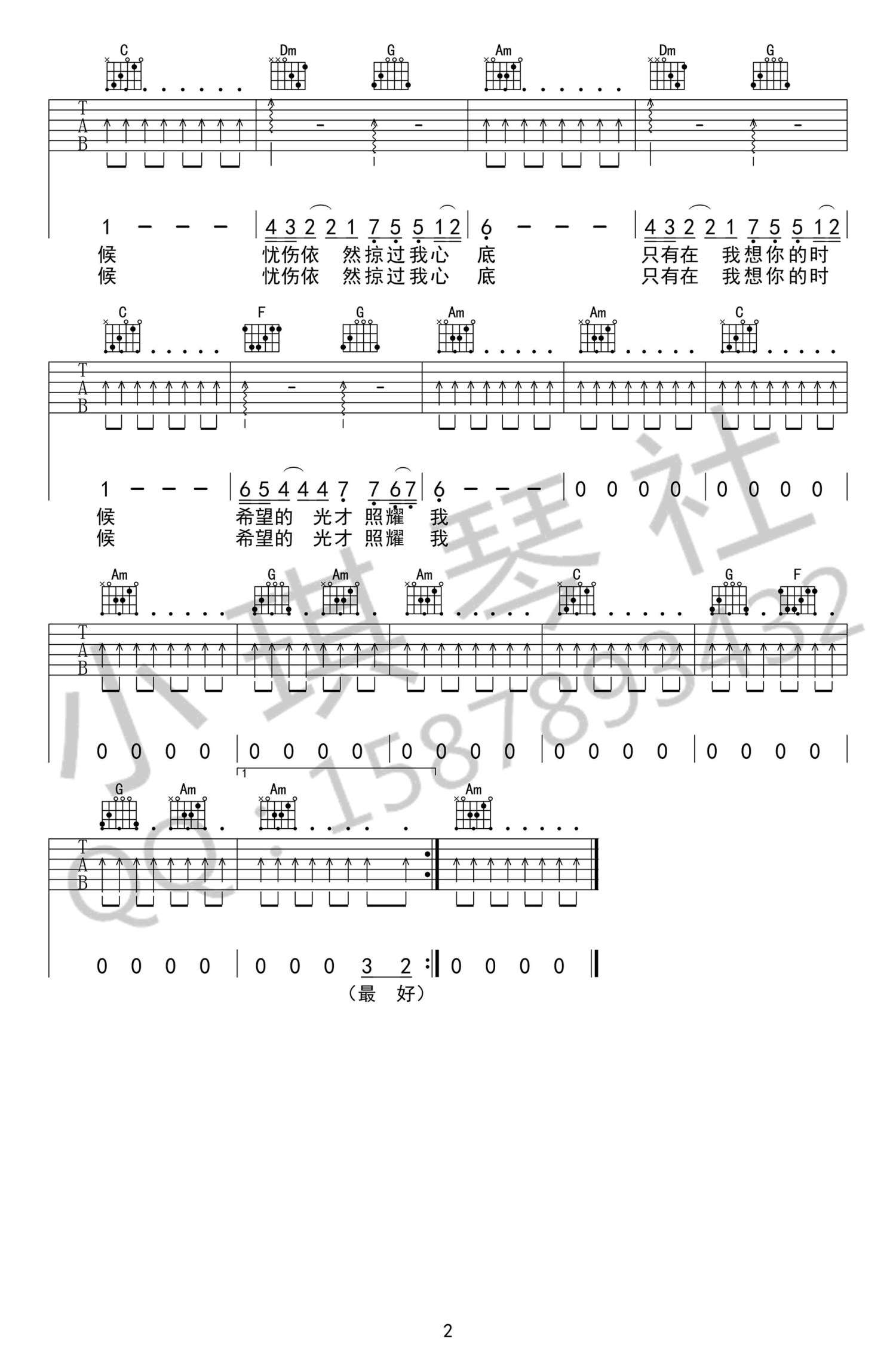 吉他弹唱C调来源:小琪琴社2066 浏览2020-12-06 22:37发布图谱共2页
