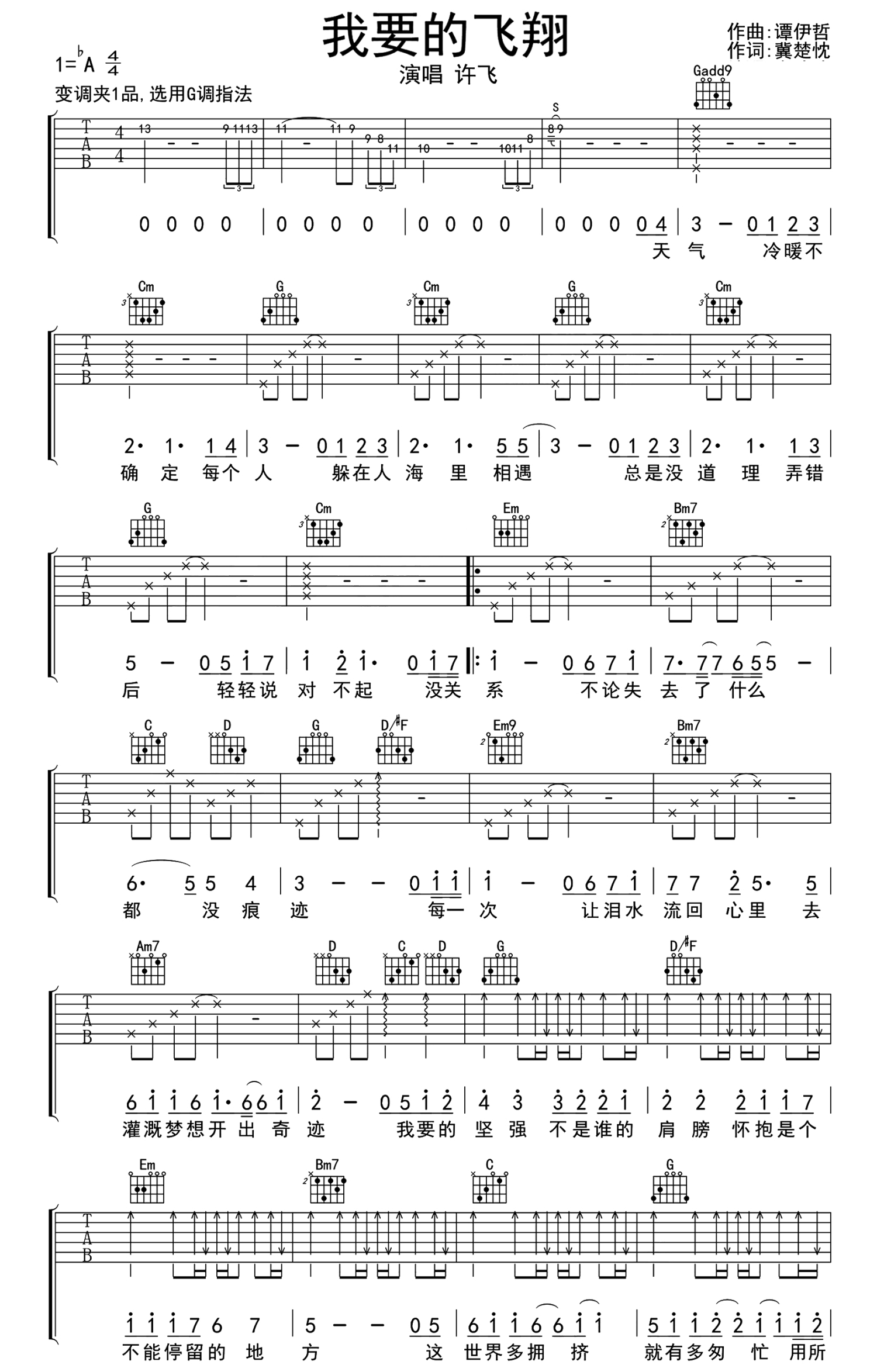我要的飞翔吉他谱 - 许飞 - G调吉他弹唱谱