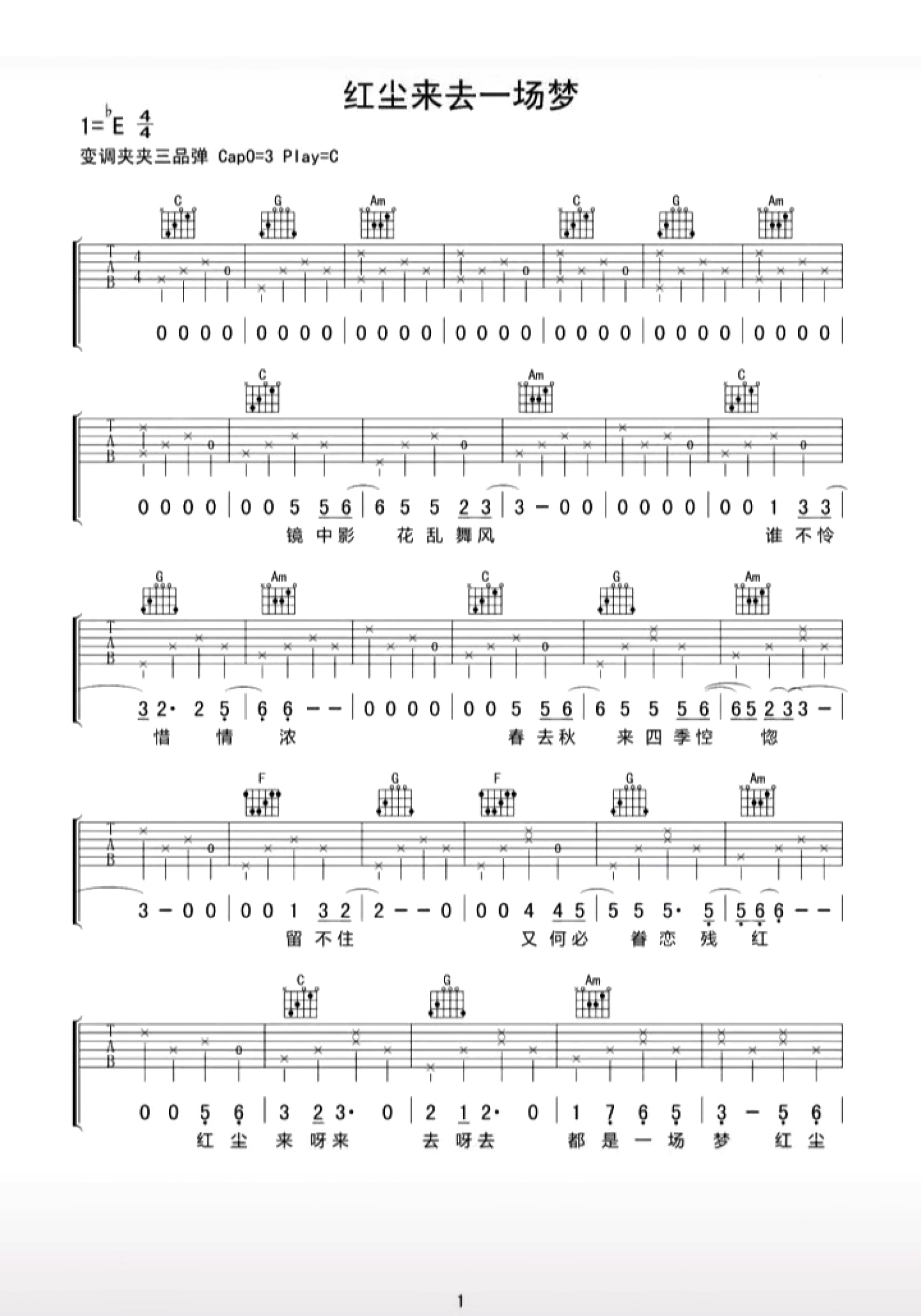 当前位置:琴谱网>吉他弹唱>红尘来去一场梦