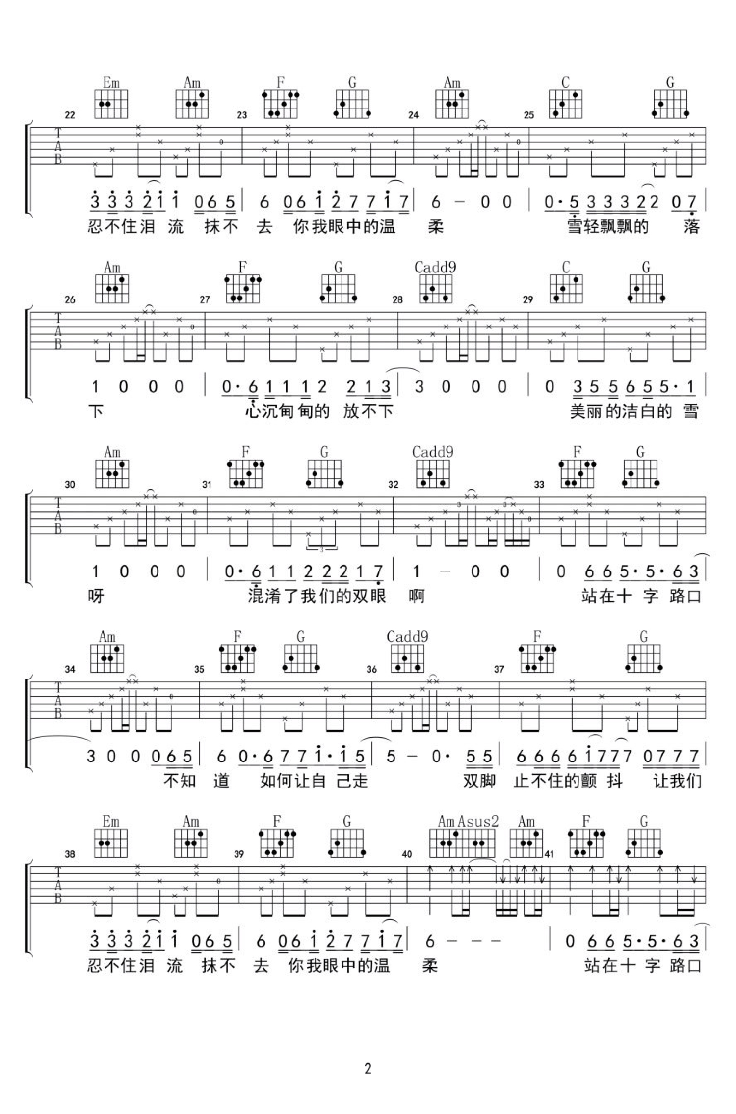 曲谱介绍: 纣王老胡演唱,十字路口吉他谱,C调编配六线谱,我站在十字路口,明明知道那条荒芜的路也许会葬身,却仍然奋力前往。因为我也荒芜,我的枯地只有你能灌溉。每首歌,每个人,都是一个故事。各自曲折,各自悲哀。十字路口吉他弹唱谱,纣王老胡民谣歌曲推荐收藏。