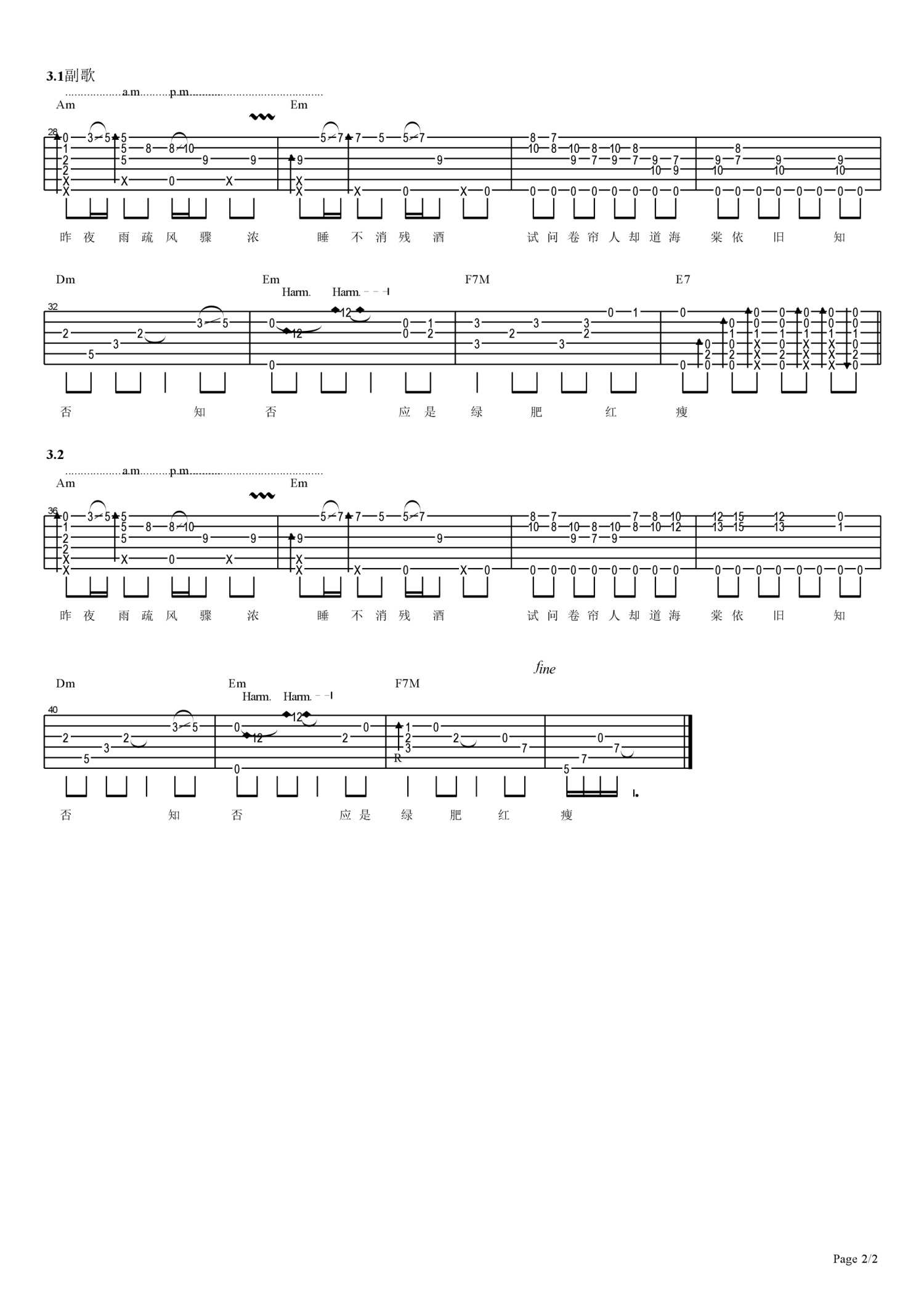 吉他独奏原调来源:OD琴行1007 浏览2020-12-09 00:56发布图谱共2页