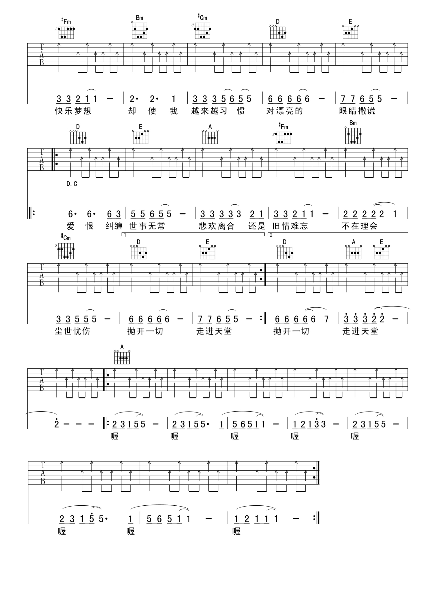 当前位置:琴谱网>吉他弹唱>天堂