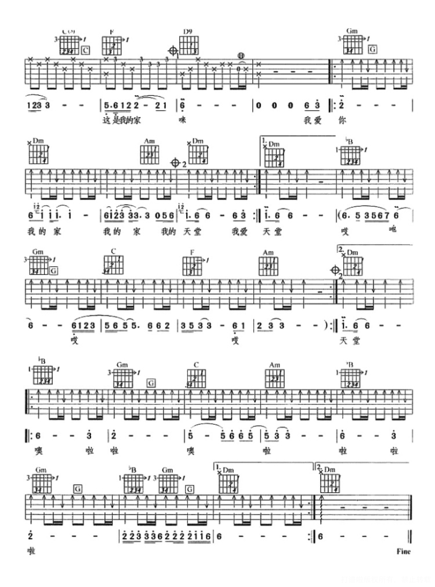 当前位置:琴谱网>吉他弹唱>天堂
