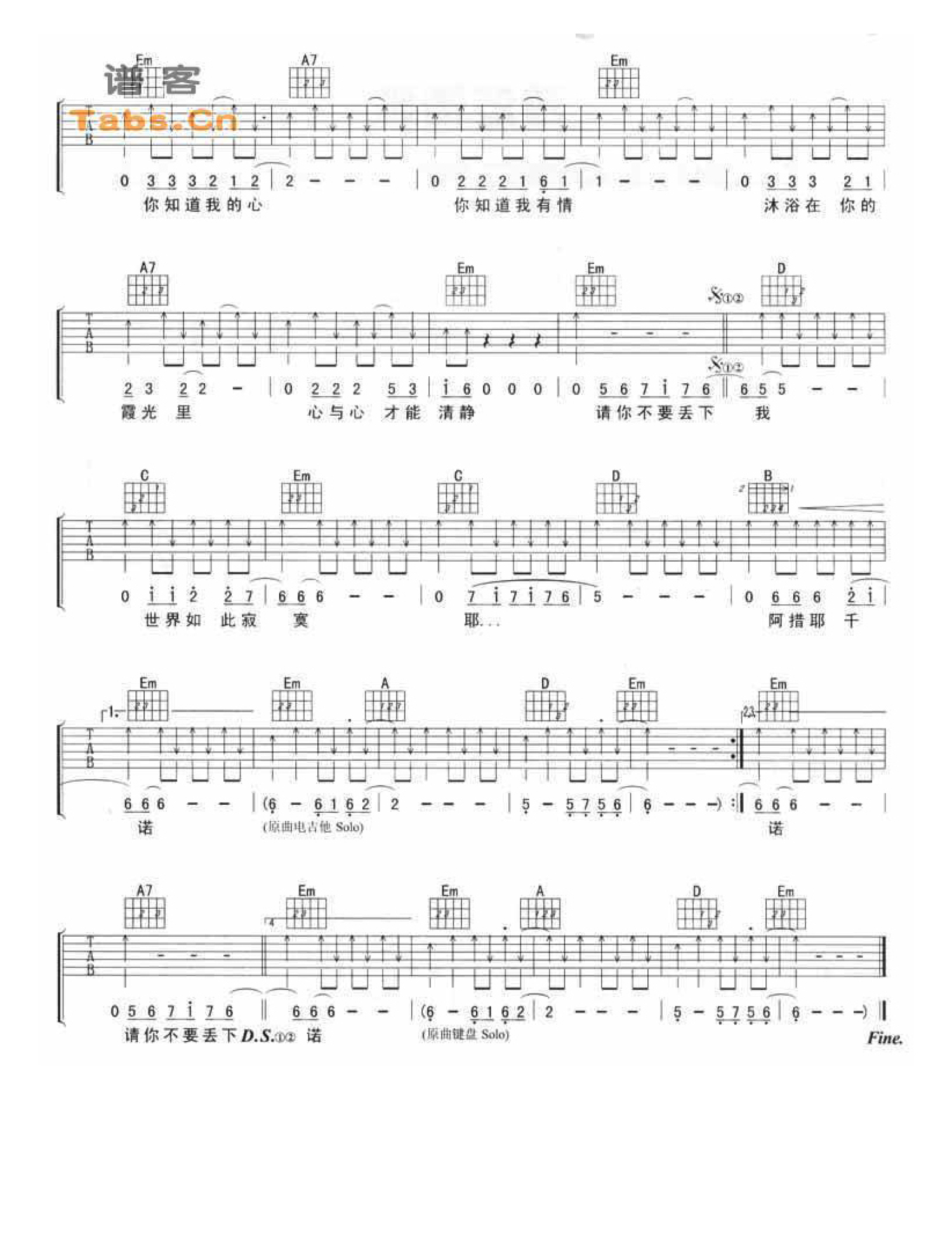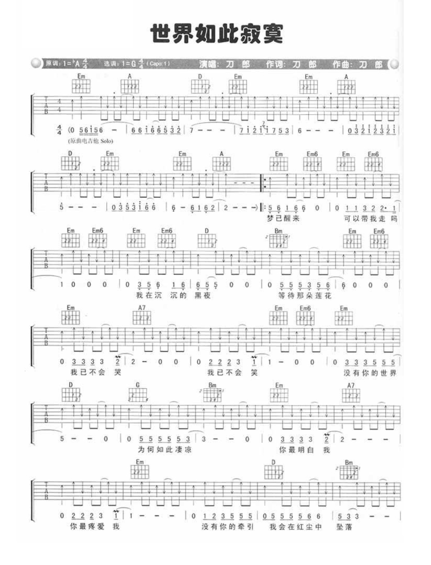 曲谱介绍: 刀郎《世界如此寂寞》吉他谱_G调吉他弹唱谱