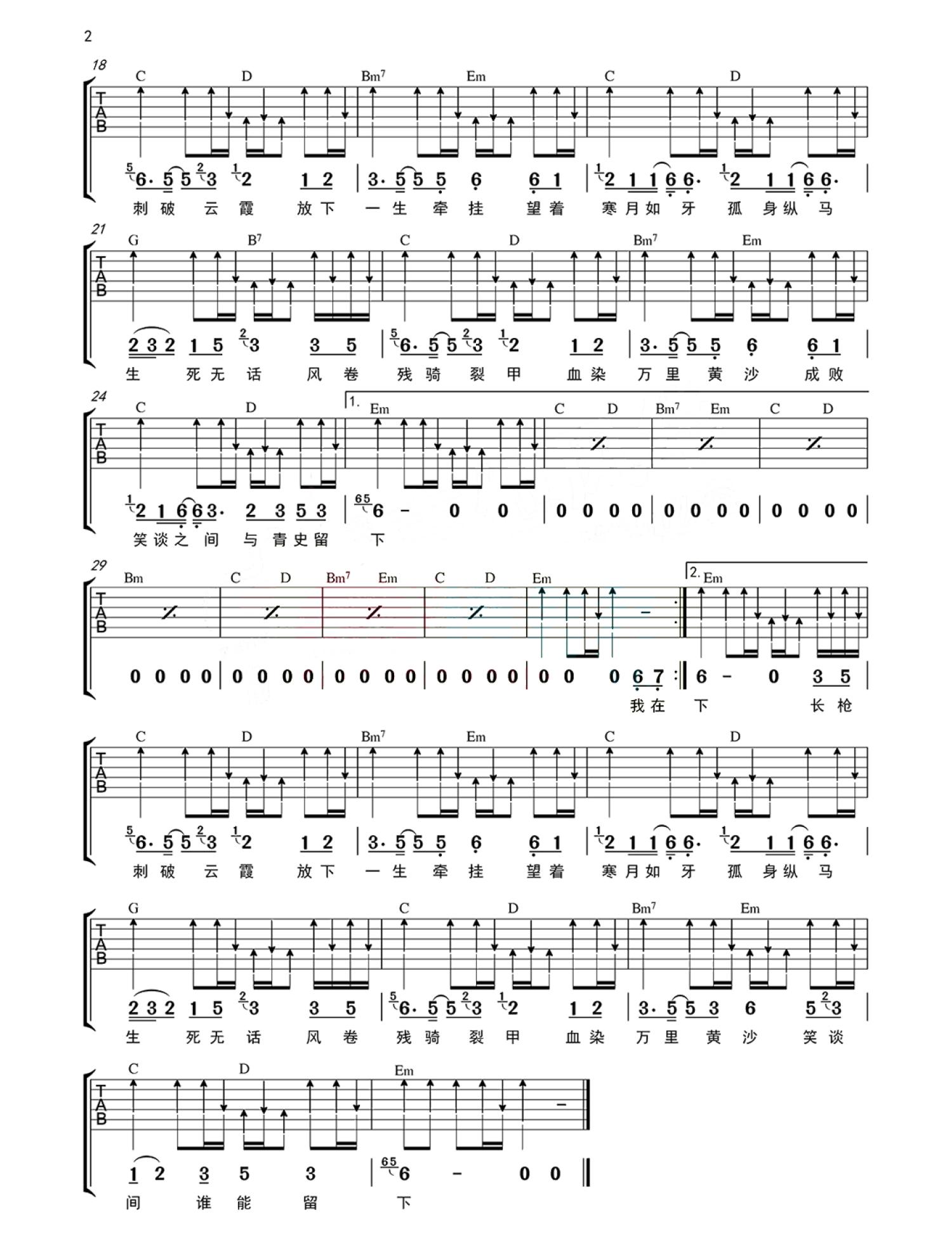 曲谱介绍: 是七叔呀《踏山河》吉他谱_G调吉他弹唱谱
