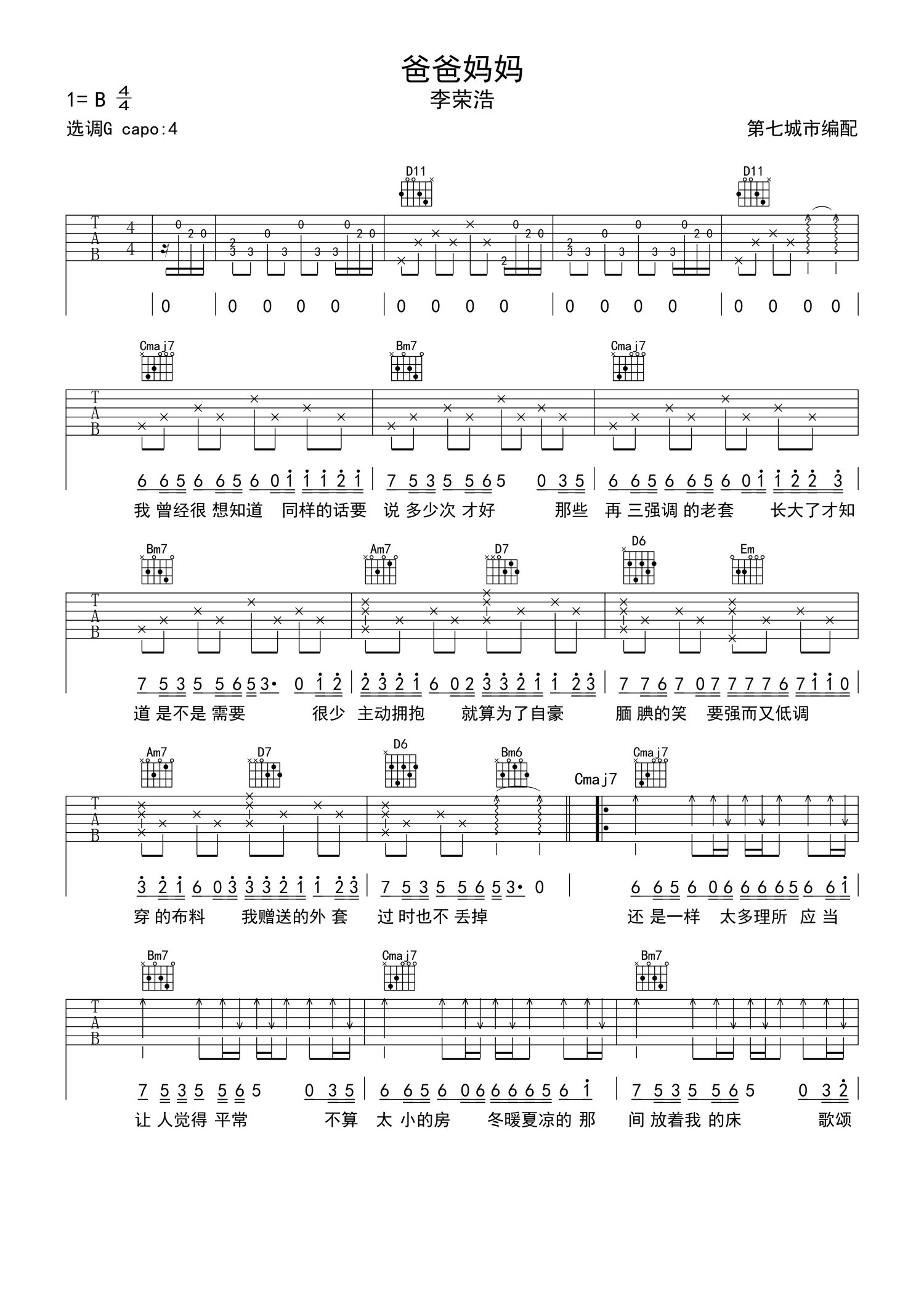 • 爸爸妈妈吉他谱 - 李荣浩 - G调吉他弹唱谱第1张